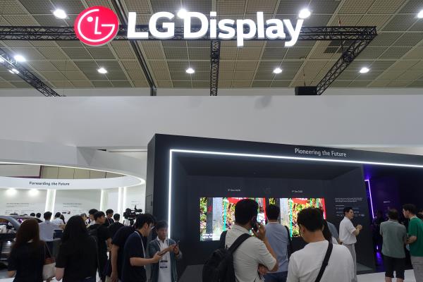 LGµð½ºÇ÷¹ÀÌ´Â Àü½ÃÀå °¡Àå ¾ÕÂÊ¿¡ 4¼¼´ë RGB Tandem OLED¿Í 3¼¼´ë ÆÐ³ÎÀ» ³ª¶õÈ÷ Àü½ÃÇØ ±â¼ú ÁøÈ¸¦ ½Ã°¢ÀûÀ¸·Î °Á¶Çß´Ù. ÇöÀç ¾ç»ê ÁßÀ̶ó°í ¹àÈù 4¼¼´ë OLED´Â ¹à±â, ¼ö¸í, Àü·Â È¿À²ÀÌ °³¼±µÈ °ÍÀÌ Æ¯Â¡ÀÌ´Ù. Àü½ÃÀå Áß¾Ó¿¡´Â Â÷·® ³»ºÎ¸¦ ÀçÇöÇÑ ´ëÇü ±¸Á¶¹°ÀÌ ¼³Ä¡µÅ, LGµð½ºÇ÷¹ÀÌÀÇ Â÷·®¿ë Á¦Ç°ÀÌ Á¾ÇÕÀûÀ¸·Î ¼Ò°³µÆ´Ù. ÇØ´ç ±¸Á¶¹°¿¡´Â 57ÀÎÄ¡ ÇÊ·¯ÅõÇÊ·¯(P2P) µð½ºÇ÷¹ÀÌ, õÀåÇü ½½¶óÀÌ´õºí RSE, Åõ¸í OLED, ÃʰíÈÖµµ ¿ÜºÎ µð½ºÇ÷¹ÀÌ µîÀÌ Å¾ÀçµÆ´Ù.