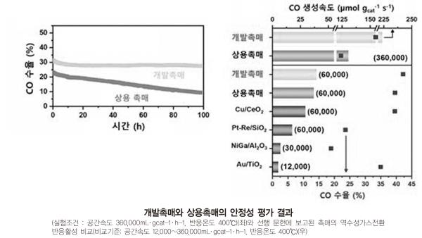 ½ÅÃ˸Ŵ 400¡É¿¡¼ ÀÏ»êÈź¼Ò ¼öÀ² 33.4%¿Í Ã˸Š1±×·¥´ç 1ÃÊ µ¿¾È 223.7¸¶ÀÌÅ©·Î¸ô(μmol·gcat-1·s-1)ÀÇ ÀÏ»êÈź¼Ò »ý¼º¼Óµµ¸¦ ´Þ¼ºÇϰí 100½Ã°£ ÀÌ»ó ¾ÈÁ¤ÀûÀ¸·Î ÀÛµ¿Çß´Ù. ÀÌ´Â »ó¿ë ±¸¸® Ã˸Š´ëºñ ÀÏ»êÈź¼Ò »ý¼º¼Óµµ¸¦ 1.7¹è ÀÌ»ó, »ý¼º ¼öÀ²Àº 1.5¹è ÀÌ»ó ³ôÀÎ ¼º°ú´Ù. ¶Ç Àú¿Â¿¡¼ Ȱ¼ºµµ°¡ ³ôÀº ¹é±Ý µî ±Í±Ý¼Ó Ã˸ſ¡ ºñÇØ¼µµ ÀÏ»êÈź¼Ò »ý¼º¼Óµµ´Â 2.2¹è, »ý¼º ¼öÀ²Àº 1.8¹è ³ô¾Æ ¼¼°è ÃÖ°í ¼öÁØÀ» ³ªÅ¸³Â´Ù. »ê¾÷ÇöÀå Àû¿ëÀ¸·Î ‘ź¼ÒÁ߸³ ½ÇÇö’±â´ë ‘Àú¿Â ÀÌ»êÈź¼Ò ¼ö¼ÒÈ Ã˸бâ¼ú’Àº °ª½Î°í dzºÎÇÑ ±Ý¼ÓÀ¸·Î ÀÏ»êÈź¼Ò¸¦ °íÈ¿À²·Î »ý»êÇÒ ¼ö ÀÖ´Â Çõ½ÅÀû ¼º°ú·Î, ÀÌÇ»¾ó(e-SAF, e-¸Þź¿Ã) µî Áö¼Ó °¡´ÉÇÑ ÇÕ¼º¿¬·á »ý»êÀÇ ÇÙ½É ¿ø·á¸¦ °æÁ¦ÀûÀ¸·Î ´ë·®»ý»êÇÒ ¼ö ÀÖ¾î ÇÕ¼º¿¬·á ¹× ÈÇÐÁ¦Ç° »ý»ê È®´ë¿¡ Å« µµ¿òÀÌ µÉ °ÍÀ¸·Î ±â´ë¸¦ ¸ðÀº´Ù.