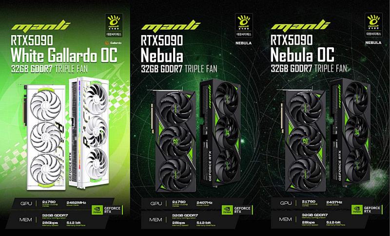 | ½ÅÁ¦Ç° / ´ë¿ø¾¾Æ¼¿¡½º, Manli GeForce RTX 5090 ±×·¡ÇÈÄ«µå 3Á¾ Ãâ½Ã | |