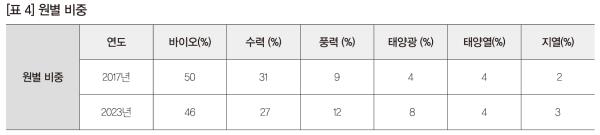 ¼ö¼Û 2023³â ¼ö¼Û ºÎ¹®ÀÇ Àç»ý¿¡³ÊÁö ¼Òºñ ºñÁßÀº 3.8 %ÀÇ ¸Å¿ì ³·Àº ¼öÁØÀÌ¸ç ¹ÙÀÌ¿À¿¬·á°¡ ±× Áß 89 %(2017³â 92 %)¸¦ Â÷ÁöÇÒ °ÍÀ¸·Î ¿¹ÃøÇß´Ù.