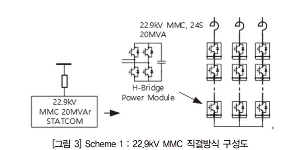 1.1. 22.9kV MMC Á÷°á¹æ½Ä (Scheme 1) ¢º±¸¼º ¿ø¸® : MMC(Modular Multilevel Converter)¸¦ Àý¿¬ º¯¾Ð±â ¾øÀÌ 22.9kV ¹èÀü¹Ý¿¡ Á÷Á¢ ¿¬°áÇÏ´Â ¹æ½ÄÀÌ´Ù. [±×¸² 3] MMC´Â ¸ðµâÇü ¸ÖƼ·¹º§ ÄÁ¹öÅÍ ±â¼úÀÇ º¸ÆíÀûÀÎ °³³äÀ» Á¦½ÃÇϸç, °íÀü¾Ð Á÷·ù¼ÛÀü(HVDC) ºÐ¾ß¿¡¼ ±× È¿À²¼º°ú ¼º´ÉÀÌ ÀÔÁõµÈ ¹Ù ÀÖ´Ù. ¢ºÆ¯Â¡ ¹× ÀåÁ¡ : ÀÌ ¹æ½ÄÀº º¯¾Ð±â ºÎÀç·Î ÀÎÇØ Àü·Â ¼Õ½ÇÀÌ ÃÖ¼ÒÈµÇ¾î ¾à 99%¿¡ ´ÞÇÏ´Â °¡Àå ³ôÀº ½Ã½ºÅÛ È¿À²À» º¸ÀδÙ. ÀÌ´Â ¿¬°£¿î¿µºñ(OPEX)¸¦ ÃÖ¼ÒÈÇÏ´Â ÁÖ¿ä ¿äÀÎÀ¸·Î ÀÛ¿ëÇÑ´Ù. ¶ÇÇÑ ÀÀ´ä ¼Óµµ°¡ °¡Àå ºü¸£¸ç(<1% THD), ¼³ºñ ±¸¼ºÀÌ °¡Àå ÄÄÆÑÆ®ÇÏ¿© ¼³Ä¡ ¸éÀû(9m x 14m)À» ÃÖ¼ÒÈÇÏ°í °ø°£ Ȱ¿ë¼ºÀ» ±Ø´ëÈÇÑ´Ù. ÃÖ±Ù MMC ¸ðµâ »ý»ê ½Ã½ºÅÛÀÇ ÇÕ¸®È·Î ÃʱâÅõÀÚºñ(CAPEX) Ãø¸é¿¡¼µµ °æÀï·ÂÀ» È®º¸ÇÏ¿´À¸¸ç, ÃѼÒÀ¯ºñ¿ë(TCO) °üÁ¡¿¡¼ °¡Àå °æÁ¦ÀûÀÌ°í ¿ì¼öÇÑ ±¸¼º ¹æ½ÄÀÌ´Ù.