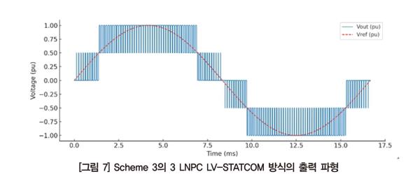 1.4. MMC Á÷°á¹æ½Ä°ú 440V LV-STATCOM 3·¹º§ NPC ¹æ½ÄÀÇ Ãâ·Â ÆÄÇü ºñ±³ STATCOMÀÇ Ãâ·Â ÆÄÇüÀº °èÅë ¾ÈÁ¤¼º°ú °íÁ¶ÆÄ ¾ïÁ¦ ¼º´É¿¡ Á÷Á¢ÀûÀÎ ¿µÇâÀ» ¹ÌÄ£´Ù. º» Àý¿¡¼´Â Scheme 1(22.9kV MMC Á÷°á¹æ½Ä)°ú Scheme 3(440V LV-STATCOM + ´Ù±Ç¼± º¯¾Ð±â ¹æ½Ä)ÀÇ Ãâ·Â Ư¼ºÀ» ºñ±³ÇÏ¿© °¢ ¹æ½ÄÀÇ ±â¼úÀû ¿ì¼ö¼ºÀ» Á¤¼ºÀûÀ¸·Î ¼³¸íÇÑ´Ù.