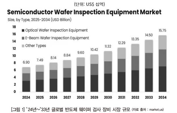 ´Ù¸¸, ¹Ì±¹ Á¤ºÎ´Â ¡¸¹«¿ªÈ®Àå¹ý(Trade Expansion Act) 232Á¶¡¹¿¡ µû¶ó ¹ÝµµÃ¼ ¼öÀÔ°ú °ü·ÃµÈ ±¹°¡¾Èº¸ À§ÇèÀ» Æò°¡Çϱâ À§ÇÑ Á¶»ç¸¦ ½ÃÀÛÇß´Ù. 4¿ù 1ÀÏ¿¡ ½ÃÀ۵Ǿî 270ÀÏ À̳»¿¡ Á¾·áµÉ À̹ø Á¶»ç °á°ú¿¡ µû¶ó, ¹ÝµµÃ¼ ¹× °ü·Ã ÀüÀÚ Á¦Ç°¿¡ ´ëÇÑ »õ·Î¿î °ü¼¼ ºÎ°ú ¶Ç´Â ±âŸ ¹«¿ª Á¦ÇÑ Á¶Ä¡°¡ µµÀ﵃ ¼öµµ ÀÖ´Ù. ¹ÝµµÃ¼ ¿þÀÌÆÛ °Ë»ç Àåºñ ½ÃÀå µ¿Ç⠱۷ιú ¹ÝµµÃ¼ ¿þÀÌÆÛ °Ë»ç Àåºñ ½ÃÀå ±Ô¸ð´Â ’24³â¿¡ ¾à 69¾ï ´Þ·¯¿¡¼ ¿¬Æò±Õ ¾à 8.6%¾¿ ¼ºÀåÇÏ¿© ’34³â¿¡´Â ¾à 157¾ï5000¸¸ ´Þ·¯°¡ µÉ °ÍÀ¸·Î Àü¸ÁµÈ´Ù. ’24³â ±âÁØ, Àüü ½ÃÀåÀÇ ¾à 55%´Â ¾Æ½Ã¾Æ°¡ Â÷ÁöÇÏ¸ç °¡Àå Å« ºñÁßÀ» Â÷ÁöÇϰí ÀÖÀ¸¸ç, ºÏ¹Ì´Â ¾à 25%, À¯·´Àº ¾à 15%ÀÇ Á¡À¯À²·Î ±× µÚ¸¦ À̾ú´Ù.