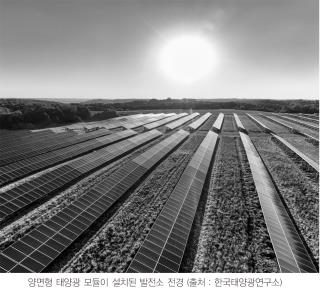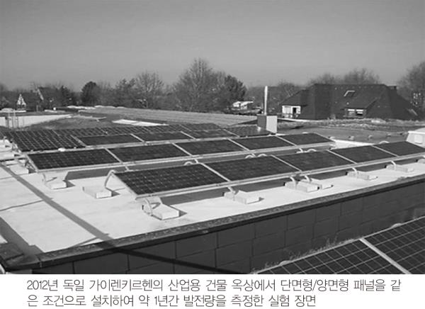±âÁ¸ ´Ü¸éÇü(Mono-facial) ž籤 ÆÐ³ÎÀº ¸ðµâ Àü¸éÀÇ ¼¿¿¡ žçºûÀÌ ´êÀ» ¶§¸¸ ¹ßÀüÀÌ ÀÌ·ç¾îÁö°í, ÈĸéÀº ¸·Çô ÀÖ¾î ºûÀ» Ȱ¿ëÇÏÁö ¸øÇÏ´Â ±¸Á¶ÀÌ´Ù. ¹Ý¸é, ¾ç¸éÇü(Bi-facial) ž籤 ÆÐ³ÎÀº ¾Õ¸éÀº Á÷Á¢ÀûÀÎ ÇÞºûÀ» Ȱ¿ëÇϰí, ÈĸéÀº Áö¸éÀ̳ª °Ç¹°¿¡¼ ¹Ý»çµÈ ºûÀ» ÀÌ¿ëÇØ Ãß°¡·Î Àü·ÂÀ» ¸¸µé¾î³»´Â ¹æ½ÄÀ̶ó ´Ü¸éÇü¿¡ ºñÇØ ÈξÀ ´õ ¸¹Àº Àü±â¸¦ »ý»êÇÒ ¼ö ÀÖ´Ù.