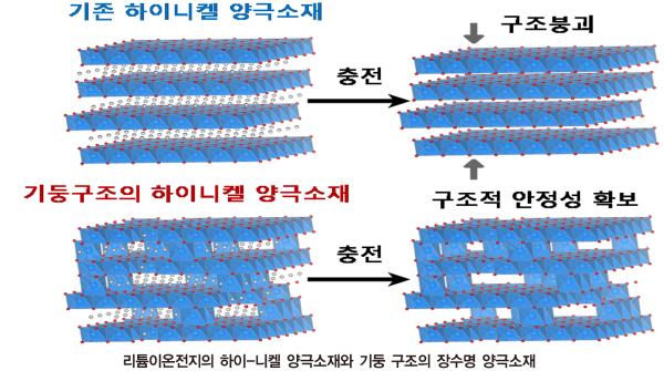 Àü±âÂ÷ º¸±ÞÀÌ ºü¸£°Ô ´Ã¾î³ª¸é¼ ÇÑ ¹ø ÃæÀüÀ¸·Î ´õ ¸Ö¸® °¥ ¼ö ÀÖ´Â ÍÔ¿¡³ÊÁö ¹èÅ͸®ÀÇ ¿ä¼ÒÀÎ ´ÏÄÌ ¼ººÐÀÌ ÇʼöÀûÀÌ´Ù. ÇöÀç ´õ ¸¹Àº ¿¡³ÊÁö¸¦ ÀúÀåÇϱâ À§ÇØ ´ÏÄÌ ÇÔ·®À» ³ôÀÌ´Â Ãß¼¼Áö¸¸, ´ÏÄÌÀÌ 90%¸¦ ³Ñ¾î¼´Â ÇÏÀÌ-´ÏÄÌ ¾ç±ØÀç´Â Ãæ·¹æÀüÀ» ¹Ýº¹ÇÒ¼ö·Ï ³»ºÎ ±¸Á¶°¡ ºÎÇ®°Å³ª ±Þ°ÝÈ÷ ¼öÃàÇÏ¸ç ¹«³ÊÁö´Â ‘ºØ±« Çö»ó’ÀÌ ¹ß»ýÇØ ¼ö¸íÀÌ ºü¸£°Ô ÁÙ¾îµå´Â ¹®Á¦°¡ ÀÖ´Ù. ÀÌ·¯ÇÑ ±¸Á¶Àû ºÒ¾ÈÁ¤¼ºÀº ¹èÅ͸®¿¡ ¹Ì¼¼ÇÑ ±Õ¿À» ÀÏÀ¸Å°°í ¼ö¸íÀ» ±Þ°ÝÈ÷ ´ÜÃàÇØ ±×µ¿¾È °í¼º´É Àü±âÂ÷ º¸±ÞÀÇ ÁÖ¿äÇÑ °É¸²µ¹·Î ÀÛ¿ëÇØ ¿Ô´Ù.