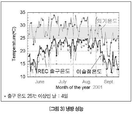 ȯ°æ Ä£ÈÀûÀÎ ¹° ¿¡¾îÄÁ °³¹ß - ¹°¸Ô´Â Çϸ¶°¡ ³Ã¹æÀ» ÇÑ´Ù? - ¢º °³¿ä¸Å¿ì °ÇÁ¶ÇÑ Áö¿ª¿¡¼´Â ¹°ÀÌ Áõ¹ßÇÏ¸é¼ ¿À» »©¾Ñ´Â Çö»óÀ» ÀÌ¿ëÇÏ¿© ´Ù¸¥ ¿¡³ÊÁö ¼Òºñ ¾øÀ̵µ Å« ³Ã°¢È¿°ú¸¦ ¾òÀ» ¼ö ÀÖÀ¸¸ç, °æ¿ì¿¡ µû¶ó¼´Â ±â¿ÂÀÌ ¿µ»óÀÎ °æ¿ì¿¡µµ ¹°ÀÇ Áõ¹ß¿¸¸À» ÀÌ¿ëÇÏ¿© ¾óÀ½À» ¾ó¸± ¼öµµ ÀÖ´Ù. ÀÌ·¯ÇÑ ¿ø¸®´Â ¿À·¡ÀüºÎÅÍ °í¿Â °ÇÁ¶ÇÑ Áö¿ª¿¡¼ÀÇ ³Ã¹æ¿¡ È¿°úÀûÀ¸·Î ÀÌ¿ëµÅ ¿ÔÀ¸¸ç, ÃÖ±Ù¿¡´Â Àΰø´«À» ¸¸µå´Â Á¦¼³±â(Snow Maker)¿¡µµ ÀÀ¿ëµÇ°í ÀÖ´Ù.¹°ÀÇ Áõ¹ß¿¿¡ ÀÇÇÑ ³Ã°¢ È¿°ú´Â ÁÖÀ§ ½Àµµ¿Í ¹ÐÁ¢ÇÑ °ü·ÃÀÌ Àִµ¥, ½À±âÁ¦°ÅÁ¦¸¦ ÀÌ¿ëÇÏ¸é ½Àµµ¿¡ °ü°è¾øÀÌ Áõ¹ß ³Ã°¢ Çö»óÀ» È¿°úÀûÀ¸·Î Ȱ¿ëÇÒ ¼ö ÀÖ´Ù. ½À±âÁ¦°ÅÁ¦´Â ÁÖº¯ÀÇ ½À±â¸¦ »¡¾ÆµéÀ̴ Ư¼ºÀÌ ÀÖÀ¸¹Ç·Î, ½À±âÁ¦°ÅÁ¦·Î ¹° ÁÖÀ§¸¦ µÑ·¯½Î¸é ¸¶Ä¡ ±ØÈ÷ °ÇÁ¶ÇÑ È¯°æ¿¡¼Ã³·³ ¹°ÀÇ Áõ¹ßÀÌ È°¹ßÈ÷ ÀϾ, ÁÖÀ§ ½Àµµ¿¡ °ü°è¾øÀÌ Å« ³Ã°¢ È¿°ú¸¦ ¾òÀ» ¼ö ÀÖ´Ù.¢º ¹°ÀÇ Áõ¹ß¿ ³Ã°¢ È¿°ú¸¦ Ȱ¿ëÇÑ ¼ÒÇü ³Ã°¢ÆÐµå °³¹ßÇѱ¹°úÇбâ¼ú¿¬±¸¿ø¿¡¼´Â ÀÌ·¯ÇÑ ¿ø¸®¸¦ ÀÀ¿ëÇÑ ¼ÒÇü ³Ã°¢ÆÐµå¸¦ °í¾ÈÇß´Ù. ÀÌ ³Ã°¢ÆÐµå´Â ¹°À» Àû¼ÅÁÖ´Â °Í¸¸À¸·Î ´Ù¸¥ ¾î¶°ÇÑ ¿¡³ÊÁö¿ø ¾øÀ̵µ ¿Âµµ¸¦ ÁÖÀ§ ¿Âµµº¸´Ù 10¡É ÀÌ»ó ³·Ãâ ¼ö ÀÖ´Ù.ÇöÀç °³¹ßµÈ ³Ã°¢ÆÐµå´Â 100§®¡¿200§®ÀÇ Å©±â¿¡ 5§® µÎ²²¸¦ °¡Á³À¸¸ç, ÀÌ ÆÐµå¸¦ ÇǺο¡ ºÎÂøÇÏ°í ½Ã¼Ó 5§° Á¤µµ·Î ¼Óº¸ÇÒ ¶§ ºÎÂø ºÎÀ§ ¿Âµµ¸¦ 23~24¡É·Î 1½Ã°£ µ¿¾È À¯ÁöÇÒ ¼ö ÀÖ´Ù. Ã౸, ³ó±¸, ¸¶¶óÅæ µî °ú°ÝÇÑ ¿îµ¿À» ÇÏ´Â °æ¿ì¿¡µµ °úµµÇÑ ÀÎü ¹ß¿¿¡ µû¸¥ ÀÎü ¿Âµµ »ó½ÂÀ» ¾ïÁ¦ÇÒ ¼ö ÀÖµµ·Ï ³Ã°¢ÆÐµåÀÇ ³Ã°¢ ¼º´ÉÀ» Çâ»ó½ÃŰ´Â ±â¼ú °³¹ßÀÌ ÁøÇàµÇ°í ÀÖ´Ù.ÀϺ» ±â¸°¸ÆÁÖÀÇ ÀúÀý·Î Â÷°¡¿ÍÁö´Â ¸ÆÁÖµµ ÀÌ·¯ÇÑ ¿ø¸®¸¦ ÀÀ¿ëÇÑ °ÍÀÌ´Ù. 5¸®ÅÍ ÅëÀ¸·Î °ø±ÞµÇ´Â ÀÌ ¸ÆÁÖ´Â ½À±âÁ¦°ÅÁ¦¿¡ ÀÇÇÑ ¹°ÀÇ Áõ¹ß ÃËÁøÀÌ Áø°ø»óÅ¿¡¼ ´õ¿í Ȱ¹ßÇØÁö´Â Çö»óÀ» ÀÌ¿ëÇÏ¿©, ³ÃÀå°í³ª ¾óÀ½ ¾øÀÌ ¸ÆÁÖÅë¿¡ ºÎÂøµÈ ¼ÕÀâÀ̸¦ µ¹¸®´Â °Í¸¸À¸·Î »ó¿ÂÀÇ ¸ÆÁÖ¸¦ 1½Ã°£ ³»¿¡ 6¡É±îÁö ³Ã°¢ÇÒ ¼ö ÀÖ´Ù.½À±âÁ¦°ÅÁ¦´Â ½À±â¸¦ Èí¼öÇÒ ¼ö ÀÖ´Â ¿ë·®¿¡ Á¦ÇÑÀÌ Àִµ¥, ¾î´À Á¤µµ ½À±â¸¦ Èí¼öÇÏ°í ³ª¸é Èí¼öµÈ ½À±â¸¦ ³¯·Á º¸³»°í(°ÇÁ¶) ´Ù½Ã »ç¿ëÇÒ ¼ö ÀÖ´Ù. ½À±âÁ¦°ÅÁ¦¸¦ ´Ù½Ã °ÇÁ¶ÇÏ°Ô ¸»¸®´Â °úÁ¤¿¡¼ ¿¿¡³ÊÁö°¡ ¼Ò¿äµÈ´Ù.½À±âÁ¦°ÅÁ¦¸¦ °Ç¹° ³Ã¹æ¿¡ Ȱ¿ëÇϱâ À§ÇÑ ¿¬±¸ °³¹ßÀÌ ¼¼°è °¢±¹¿¡¼ ÁøÇàµÇ°í ÀÖ´Ù. °Ç¹° ³Ã¹æ¿¡¼ ¿Âµµ¸¦ ³·Ãß´Â °Í ¸øÁö¾Ê°Ô Áß¿äÇÑ °Í ÁßÀÇ Çϳª°¡ ½À±â Á¦°Å´Ù. ±âÁ¸ ³Ã¹æ½Ã½ºÅÛ¿¡ Àû¿ëµÇ´Â Á¦½À ¹æ¹ýÀº °ø±â¸¦ À̽½Á¡ ¿Âµµ ÀÌÇÏ·Î ³Ã°¢½ÃÄÑ Á¦½ÀÇÏ´Â ¹æ½ÄÀÌ´Ù. ÀÌ ³Ã°¢½Ä Á¦½À ¹æ¹ýÀº °ú´ÙÇÑ ¿¡³ÊÁö¸¦ ¼ÒºñÇϰí, ³Ãµ¿±â Áõ¹ß ¿Âµµ¸¦ ÀúÇϽÃÄÑ ³Ãµ¿±â È¿À²À» ÀúÇϽÃ۸ç, ¿Âµµ¿Í ½Àµµ¸¦ µ¶¸³ÀûÀ¸·Î Á¦¾îÇÏÁö ¸øÇØ µû·Î Àç¿ ¹æ¹ýÀ» µµÀÔÇØ¾ß ÇÏ´Â µîÀÇ ´ÜÁ¡ÀÌ ÀÖ´Ù.¹Ý¸é ½À±âÁ¦°ÅÁ¦¸¦ ÀÌ¿ëÇÏ´Â Á¦½À ³Ã¹æ½Ã½ºÅÛ¿¡¼´Â ÀÌ·¯ÇÑ ´ÜÁ¡À» º¸¿ÏÇÒ ¼ö ÀÖ´Ù.(<±×¸² 1> ÂüÁ¶)Á¦½À ³Ã¹æ½Ã½ºÅÛ¿¡¼´Â Á¦½À±â¸¦ ÀÌ¿ëÇÏ¿© ÀῺÎÇϸ¦ ó¸®ÇÑ´Ù. Á¦½À ³Ã¹æ½Ã½ºÅÛ¿¡¼´Â °í¿Â´Ù½ÀÇÑ °ø±â°¡ Á¦½À±â¸¦ Åë°úÇÏ¸é¼ °ÇÁ¶µÇ°í, ½À±â°¡ ÀÀÃàµÇ¸é¼ ¹ß»ýÇÑ ÀÀÃàÀá¿·Î ´õ¿í °í¿ÂÀ¸·Î °¡¿µÈ´Ù. ÀÌ °í¿Â °ÇÁ¶ÇÑ °ø±â´Â Çö¿±³È¯±â¿Í ³Ãµ¿±âÀÇ ³Ã¼ö ÄÚÀÏÀ» Áö³ª¸é¼ ¿Âµµ°¡ ³·¾ÆÁø ÈÄ ½Ç³»·Î °ø±ÞµÈ´Ù.¡Ü Á¦½À ³Ã¹æ °úÁ¤¨ç Á¦½ÀÁ¦½À±â·Î ½À°ø±â¸¦ °ÇÁ¶½ÃŰ°í ¼öÁõ±â ÀÀÃà¿·Î °ø±â ¿Âµµ¸¦ »ó½Â½ÃŲ´Ù.¨è Çö¿ ±³È¯¿ÜºÎ °ø±â¿ÍÀÇ Çö¿ ±³È¯À» ÅëÇØ ³Ã°¢½ÃŲ´Ù.¨é Áõ¹ß ³Ã°¢¹° Áõ¹ß¿·Î °ø±â¸¦ ³Ã°¢½ÃŲ´Ù.¡Ü Á¦½À±â Àç»ý¼öºÐÀ» ÇÔÀ¯ÇÑ Àç»ý±â´Â °í¿Â °ø±â¸¦ ÀÌ¿ëÇÏ¿© ¼öºÐÀ» Áõ¹ß½ÃÄÑ °ÇÁ¶½ÃŲ´Ù.ÀÌ ¹æ½ÄÀº ±âÁ¸ ³Ã¹æ½Ã½ºÅÛ¿¡¼ ÀῺÎÇϸ¦ Á¦°ÅÇÏ¿© ³Ãµ¿±â ºÎÇϸ¦ °æ°¨½Ã۰í, ³Ãµ¿±â¿¡ ÀÇÇÑ ¿¡³ÊÁö ¼Òºñ¸¦ °¨¼Ò½ÃŲ´Ù. ¹Ì±¹À̳ª À¯·´ µî Áö¿¡¼´Â ÀÌ·¯ÇÑ ½Ã½ºÅÛÀÌ ´ëÇü ½´ÆÛ¸¶ÄÏ, Á¦¾àȸ»ç, ¹Ú¹°°ü, ¹®¼ ¼öÀå°í µî Àú½Àµµ°¡ ¿ä±¸µÇ´Â Àå¼Ò¿Í ȯ±âÀ²ÀÌ ³ô°Å³ª Àç½Ç ÀοøÀÌ ¸¹¾Æ ÀῺÎÇÏÀÇ ºñÁßÀÌ Å« °Ç¹° µî¿¡ È¿°úÀûÀ¸·Î Àû¿ëµÇ°í ÀÖ´Ù. ±×·¯³ª ÀÌ ¹æ½ÄÀº ±âÁ¸ ³Ã¹æ½Ã½ºÅÛ¿¡ Á¦½À±â¿Í Á¦½À±âÀÇ Àç»ýÀ» À§ÇÑ °í¿Â ¿ ±³È¯±â ¶Ç´Â °¡½º¹ö³Ê¸¦ Ãß°¡ÀûÀ¸·Î ¼³Ä¡ÇØ¾ß Çϸç, ½À±