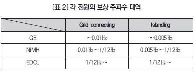 1. Á¦¾î Àü·« 3Àå¿¡¼ ¾òÀº ºÎÇÏ º¯µ¿, 4Àå¿¡¼ Æò°¡ÇÑ Àü¿ø Á֯ļö Ư¼ºÀ» ¹ÙÅÁÀ¸·Î, º» ¸¶ÀÌÅ©·Î±×¸®µå¿¡¼ °¢ Àü¿øÀÌ º¸»óÇÏ´Â ºÎÇÏ º¯µ¿ÀÇ Á֯ļö ´ë¿ªÀ» Á¤·®ÀûÀ¸·Î °áÁ¤ÇÑ´Ù. 4ÀåÀÇ °á°ú¸¦ ÅëÇØ °¡½º¿£Áø ¹ßÀü±â´Â ¾à 0.01§Ô ÀÌÇÏ, ´ÏÄÌ-¼ö¼ÒÀüÁö´Â ¾à 1§Ô ÀÌÇÏ, Àü±â ÀÌÁßÃþ Ä¿ÆÐ½ÃÅÍ´Â ¼ö §Ô ÀÌÇÏÀÇ ºÎÇÏ º¯µ¿¿¡ ´ëÇØ º¸»ó °¡´ÉÇÏ´Ù´Â »ç½ÇÀ» ³ªÅ¸³ÂÁö¸¸, °¢ Àü¿øÀÇ º¸»ó ´ë¿ªÀ» °áÁ¤ÇÒ ¶§¿¡´Â °¢ Àü¿øÀÇ Á¦¾î Áֱ⵵ °í·ÁÇØ¾ß ÇÑ´Ù. 3ÀåÀÇ °á°ú¸¦ ¹ÙÅÁÀ¸·Î Á¦¾î ½Ã½ºÅÛ°ú Á¦¾î ¸»´ÜÀº ¼Ò ³» LAN ȸ¼±À» °¡Áö°í 1ÃÊ °£°ÝÀ¸·Î Åë½ÅÀ» Çϱ⠶§¹®¿¡ Àü¿øÀÇ Ãâ·Â Á¦¾î´Â ºÎÇÏ º¯µ¿¿¡ ´ëÇØ ÃÖ´ë 2Ãʰ¡ ´Ê´Ù. ºÎÇÏ º¯µ¿À» ´Ü¼øÇÑ Á¤ÇöÆÄ·Î °¡Á¤ÇÑ °æ¿ì, 2ÃÊ º¸»ó Áö¿¬¿¡ ´ëÇØ¼µµ º¸»ó È¿°ú¸¦ ¾òÀ» ¼ö ÀÖ´Â ºÎÇÏ º¯µ¿ÀÇ Á֯ļö¿¡¼´Â