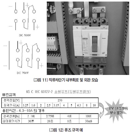 3. Á÷·ù Àü¿ëÂ÷´Ü±â ±ÔÁ¤ ¸¶·Ã ÇÊ¿ä ž籤 ¹ßÀü¼³ºñÀÇ °æ¿ì Á÷·ù Àü¿ëÂ÷´Ü±â¿¡ ´ëÇÑ ¸íÈ®ÇÑ ±ÔÁ¤ÀÌ ¾ø´Ù º¸´Ï ÇöÀå¿¡¼´Â 3P Á÷·ùÂ÷´Ü±â¸¦ <±×¸² 11>°ú °°ÀÌ Á¢¼ÓÇØ DC 750V±îÁö Àû¿ëÇϰí ÀÖ´Â °ÍÀ¸·Î Á¶»çµÆ´Ù. ±×·¯³ª Á÷·ùÀü·ù´Â Àü·ù¿µÁ¡ÀÌ ¾ø±â ¶§¹®¿¡ Àü¾ÐÀÌ ³ôÀº °æ¿ì¿¡´Â ±³·ùº¸´Ù Â÷´ÜÀÌ ¾î·Æ°í ¶ÇÇÑ ¸¶À̳ʽº(-) ¼±ÀÌ Á÷°áµÅ Àֱ⠶§¹®¿¡ À¯»ç ½Ã Â÷´Ü±â·Î¼ÀÇ ¿ªÇÒÀ» ´ã´çÇÒ ¼ö ¾ø´Â ¹®Á¦Á¡ÀÌ ¹ß»ýÇÑ´Ù. µû¶ó¼ ÀÌ¿¡ ´ëÇÑ ÀûÁ¤¼º È®ÀÎ ¿©ºÎ¿Í ž籤 ¹ßÀü¼³ºñ¿¡ ÀûÇÕÇÑ DC Â÷´Ü±â °³¹ßÀÌ ¿ä±¸µÇ°í ÀÖ´Ù.