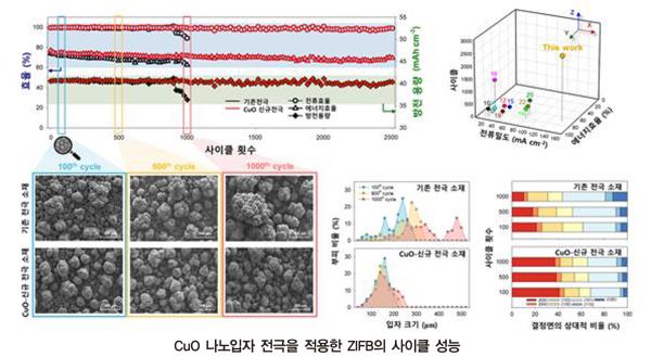 ![]() ±¸¸®»êȹ° ±â¹ÝÀÇ Àü±Ø ¼ÒÀç °³¹ß, ¼ö°è¾Æ¿¬ÀüÁö¿¡ Àû¿ëÇØ ³»±¸¼º °³¼± ‘ÀüÀÚ ½ºÆÝÁö’±â¼ú ÅëÇØ µ§µå¶óÀÌÆ® Çü¼º ¾ïÁ¦ ¼º°ø ¿¡³ÊÁö¿¬ ¿¡³ÊÁöÀúÀ忬±¸´Ü ¾çÁ¤ÈÆ·ÀÌÂù¿ì ¹Ú»ç ¿¬±¸ÁøÀÌ ±¸¸® »êȹ° ±â¹ÝÀÇ ½Å±Ô Àü±Ø ¼ÒÀ縦 °³¹ßÇÏ°í ¼ö°è¾Æ¿¬ÀüÁö¿¡ Àû¿ëÇØ ³»±¸¼ºÀ» 3¹è °³¼±ÇÏ´Â µ¥ ¼º°øÇß´Ù. ¿¬±¸ÁøÀº ½Å±Ô ±¸¸® »êȹ° ³ª³ëÀÔÀÚ¸¦ °³¹ßÇϰí À½±ØÀÇ ÀüÀÚ¸¦ È¿°úÀûÀ¸·Î Èí¼ö·¹æÃâÇÏ´Â ‘ÀüÀÚ ½ºÆÝÁö(Electron Sponge)’ ±â¼úÀ» ÅëÇØ ¼ö°è¾Æ¿¬ÀüÁöÀÇ µ§µå¶óÀÌÆ® Çü¼ºÀ» ¾ïÁ¦ÇÏ´Â µ¥ ¼º°øÇß´Ù. À̸¦ Àû¿ëÇÑ ¼ö°è¾Æ¿¬ÀüÁö´Â ±âÁ¸ ÀüÁö ´ëºñ 3¹è ³ôÀº ³»±¸¼ºÀ» ³ªÅ¸³Â´Ù. Á¤¸® ÆíÁýºÎ ÀÚ·áÁ¦°ø KIER ![]() ¼ö°è¾Æ¿¬ÀüÁö´Â ¹°À» ÀüÇØÁú·Î »ç¿ëÇÏ´Â ÀÌÂ÷ÀüÁö·Î, Èֹ߼ºÀÇ ¾×ü ÀüÇØÁúÀ» »ç¿ëÇÏ´Â ¸®Æ¬ÀÌ¿ÂÀüÁö¿¡ ºñÇØ ÈÀç À§ÇèÀÌ ¾ø°í ģȯ°æÀûÀÌ´Ù. ¶Ç Á¦Á¶ ºñ¿ë°ú ¼ÒÀç°¡ Àú·ÅÇÏ¿© Â÷¼¼´ë ¿¡³ÊÁöÀúÀå½Ã½ºÅÛ(ESS)À¸·Î ÁÖ¸ñ¹Þ°í ÀÖ´Ù. ƯÈ÷ ‘¾Æ¿¬-Æú¸®¿ä¿Àµå È帧ÀüÁö(ZIFB)’´Â ±âÁ¸ »ó¿ëÈ ´Ü°è¿¡ µé¾î¼± ‘¾Æ¿¬-ºê·Î¹Î È帧ÀüÁö(ZBFB)’¿Í ºñ±³ÇÏ¿© ¹ÝÀÀƯ¼º, ȯ°æ ģȼº ¹× °¡°Ý°æÀï·Â Ãø¸é¿¡¼ º¸´Ù ¿ì¼öÇÑ ¼º´É Ư¼ºÀ» °®Ãß¾ú´Ù. ÇÏÁö¸¸ ÃæÀü °úÁ¤¿¡¼ À½±Ø Ç¥¸é¿¡ ¾Æ¿¬±Ý¼ÓÀÌ ±æÂßÇÏ°Ô ÀüÂøµÇ´Â µ§µå¶óÀÌÆ®(dendrite) Çö»óÀÌ ¹ß»ýÇØ ¼ö¸íÀÌ Âª¾ÆÁø´Ù´Â ¹®Á¦°¡ ÀÖ´Ù. Çü¼ºµÈ µ§µå¶óÀÌÆ®°¡ À½±Ø°ú ¾ç±Ø »çÀÌ¿¡ ÀÖ´Â ºÐ¸®¸·À» ¶Õ¾î Àü±âÀû ´Ü¶ôÀ» ¹ß»ý½Ã۰í ÀüÁöÀÇ ³»±¸¼º¿¡ ½É°¢ÇÑ ¿µÇâÀ» ¹ÌÄ¡±â ¶§¹®ÀÌ´Ù. µû¶ó¼ Àü±Ø°ú ÆòÇàÇÏ°í ±ÕÀÏÇÏ°Ô ¼ºÀåÇÏ´Â “(002) °áÁ¤¼º”Àº À½±ØÀÇ ¾ÈÁ¤¼ºÀ» Å©°Ô °³¼±ÇÒ ¼ö ÀÖ´Â ÁÖ¿äÇÑ ¿ä¼ÒÀÌ´Ù. ![]() ¾Æ¿¬ ģȼº °¡Áø ±¸¸® »êȹ° ³ª³ëÀÔÀÚ ¿¬±¸ÁøÀº ¾Æ¿¬°ú ÇÕ±Ý Æ¯¼ºÀ» °®´Â ´Ù¾çÇÑ Èĺ¸ ¹°ÁúÀ» ÀÔÀÚ Å©±âº°·Î Å×½ºÆ®Çß´Ù. ±× °á°ú, ³ª³ëÀÔÀÚ Å©±âÀÇ ±¸¸® »êȹ°ÀÌ °¡Àå ¿ì¼öÇÑ ¾Æ¿¬ ģȼºÀ» ³ªÅ¸³½´Ù´Â °ÍÀ» ¹àÇô³Â´Ù. »êȱ¸¸®(CuO)´Â ¾Æ¿¬°úÀÇ °ÇÑ ÈÇÐÀû/ÀüÀÚÀû °áÇÕ±¸Á¶¸¦ Çü¼ºÇÔÀ¸·Î½á ±âÁ¸¿¡ ¿¬±¸µÇ¾î ¿Â ÇÙ»ý¼º ½Ãµå1)µé°ú´Â Â÷º°ÈµÇ´Â, ¿¹¿ÜÀûÀ¸·Î ³ôÀº ¾Æ¿¬ ģȼºÀ» ³ªÅ¸³½´Ù. À̸¦ ±â¹ÝÀ¸·Î ¿¬±¸ÁøÀº ½Å±Ô ±¸¸® »êȹ° ³ª³ëÀÔÀÚ¸¦ °³¹ßÇØ ¼ö°è¾Æ¿¬ÀüÁö¿¡ Àû¿ëÇß´Ù. ¾Æ¿¬ÀüÁöÀÇ À½±Ø¿¡¼ ÀüÀÚ´Â ¾Æ¿¬ À̿°ú ¸¸³ª ¾Æ¿¬±Ý¼ÓÀÌ µÇ°í Àü±â¸¦ ÀúÀåÇÑ´Ù. ±¸¸® »êȹ° ³ª³ëÀÔÀÚ´Â ½ºÆÝÁö°¡ ¹°À» »¡¾ÆµéÀ̵í ÀüÀÚ¸¦ »¡¾Æµé¿© À̸¦ Áß½ÉÀ¸·Î ¾Æ¿¬ÀÌ ÆòÆòÇÏ°Ô µé·¯ºÙÀ» ¼ö ÀÖµµ·Ï ÇÑ´Ù. ¾Æ¿¬ÀÌ ÆòÆòÇÏ°Ô Çü¼ºµÊÀ¸·Î½á ¹«Áú¼ÇÑ ¾Æ¿¬ Çü¼ºÀ¸·Î ÀÎÇØ ¹ß»ýÇÏ´Â µ§µå¶óÀÌÆ®(dendrite)¸¦ ¾ïÁ¦ÇÏ´Â ¿ø¸®´Ù. ¶Ç ¹æÀü ½Ã¿¡´Â ½ºÆÝÁö¿¡¼ ´Ù½Ã ¹°À» Â¥³»µí ÀüÀÚ¸¦ ºü¸£°Ô ¹æÃâÇϰí, ¾Æ¿¬±Ý¼ÓÀÇ ¿ëÇØ¸¦ ÃËÁø½ÃÄÑ À½±Ø Ç¥¸é¿¡ ³²¾ÆÀÖ´Â ¾Æ¿¬À» ÃÖ¼ÒÈÇÏ´Â ¿ªÇÒÀ» ¼öÇàÇÑ´Ù. À̸¦ ÅëÇØ Ãæ·¹æÀü °úÁ¤ÀÌ ¹Ýº¹µÉ ¶§ ³²Àº ¾Æ¿¬ÀÌ µ§µå¶óÀÌÆ®·Î ¼ºÀåÇÏ´Â °Íµµ ¹æÁöÇß´Ù. ¿¬±¸ÁøÀº ÇØ´ç ±â¼úÀ» ‘ÀüÀÚ ½ºÆÝÁö(Electron Sponge)’¶ó°í ¸í¸íÇϰí, °è»ê°úÇÐÀ» ÅëÇØ ÀüÀÚ ½ºÆÝÁö ±â¼úÀÌ ÀüÁö ÃæÀü¿¡ »ç¿ëµÇ´Â ¿¡³ÊÁöÀÇ ¼Õ½Ç±îÁö ÁÙÀÏ ¼ö ÀÖ´Ù´Â °ÍÀ» Áõ¸íÇß´Ù. À̸¦ ¼ö°è¾Æ¿¬ÀüÁö Áß ‘¾Æ¿¬-Æú¸®¿ä¿Àµå È帧ÀüÁö’¿¡ Àû¿ëÇÑ °á°ú, 2,500ȸÀÇ Ãæ·¹æÀü ½Ã¿¡µµ µ§µå¶óÀÌÆ®°¡ Çü¼ºµÇÁö ¾Ê¾Ò´Ù. ±âÁ¸ ÀüÁö°¡ 800ȸ Á¤µµ¿¡¼ µ§µå¶óÀÌÆ®¸¦ Çü¼ºÇØ °íÀåÀÌ ³ª´Â °ÍÀ» °¨¾ÈÇϸé 3¹è ÀÌ»óÀÇ ³»±¸¼ºÀ» ³ªÅ¸³½ ¼ÀÀÌ´Ù. ![]() ³ôÀº È¿À² Ư¼ºÀ¸·Î »ó¿ëÈ Ã»½ÅÈ£ ¶Ç ÃæÀü¿ë·® ´ëºñ ¹æÀü¿ë·®ÀÇ ºñÀ²Àº 98.7%·Î ÃøÁ¤µÅ ³ôÀº È¿À² Ư¼ºÀ» ³ªÅ¸³Â´Ù. ±âÁ¸¿¡ º¸°íµÈ ‘¾Æ¿¬-Æú¸®¿ä¿Àµå È帧ÀüÁö’ ´ëºñ 30% ÀÌ»ó Çâ»óµÈ 180Wh/LÀÇ ³ôÀº ¿¡³ÊÁö ¹Ðµµ¸¦ ±¸ÇöÇÏ´Â µ¥ ¼º°øÇÔÀ¸·Î½á »ó¿ëÈÀÇ °¡´É¼ºÀ» ÇÑÃþ ³ô¿´´Ù. ÇâÈÄ ¾Æ¿¬ ±â¹Ý ÀÌÂ÷ÀüÁöÀÇ ÁÖ¿ä ³Á¦ °¡¿îµ¥ ÇϳªÀÎ ‘»çÀÌŬ ¾ÈÁ¤¼º’À» È¿°úÀûÀ¸·Î °³¼±ÇÔÀ¸·Î½á ¾ÈÀüÇϰí, ¾ÈÁ¤ÀûÀ̸ç, °¡°Ý°æÀï·ÂÀÌ ¿ì¼öÇÑ Â÷¼¼´ë ESS·Î¼ ¾Æ¿¬ÀüÁöÀÇ ½ÃÀå È®´ë °¡´É¼ºÀ» ÇÑÃþ ³ôÀÎ °ÍÀÌ´Ù. ¿¬±¸ÁøÀº Àü±Ø Ç¥¸é¿¡¼ÀÇ ÀüÀÚÀÇ ºÐÆ÷ º¯È¸¦ ÅëÇØ ‘ÀüÀÚ ½ºÆÝÁö’¶ó´Â »õ·Î¿î °³³äÀ» µµÀÔÇϰí, À̸¦ ½ÇÁ¦ ‘¾Æ¿¬-Æú¸®¿ä¿Àµå È帧ÀüÁö’¿¡ Àû¿ëÇÏ¿© ½ÇÁõÇÔÀ¸·Î½á ±× ¼º´ÉÀ» È®ÀÎÇß´Ù. ÇØ´ç ÀÛµ¿¿ø¸®´Â ¾Æ¿¬ ±â¹Ý ÀÌÂ÷ÀüÁ