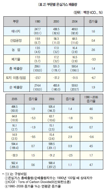 Àç»ý¿¡³ÊÁö, ¿¬·á Àüȯ, ¿¡³ÊÁö È¿À² °³¼± µî ûÁ¤¿¡³ÊÁö ºÐ¾ß°¡ 2007³â¿¡ 35.8¾ïtCO©ü·Î ÀüüÀÇ 64%¸¦ Â÷ÁöÇØ 2006³â 33%¿¡ ºñÇØ Å©°Ô Áõ°¡ÇÑ ¹Ý¸é, HFC(¼ö¼ÒºÒÈź¼Ò)¿Í N©üO(¾Æ»êÈÁú¼Ò) µî »ê¾÷¿ë °¡½º ¹èÃâ Àú°¨ »ç¾÷Àº »ç¾÷ ±âȸÀÇ ¼ÒÁøÀ¸·Î ±× ¼ö°¡ ±Þ°ÝÈ÷ ÁÙ¾îµé°í ÀÖ´Â Ãß¼¼´Ù. ÁÖ¿ä ±¸¸Å±¹°ú ÅõÀÚ ´ë»ó±¹À» »ìÆìº¸¸é 2007³â¿¡µµ 2006³â¿¡ À̾î EU°¡ ±¸¸Å±¹ Áß ¾ÐµµÀûÀÎ ºñÀ²(¾à 90%)À» Â÷ÁöÇϰí ÀÖÀ¸¸ç, ÀϺ»ÀÌ 11%¸¦ Â÷ÁöÇϰí ÀÖ´Ù. ¶ÇÇÑ Áß±¹ÀÌ ¼¼°è ÃÖ´ëÀÇ CDM ÅõÀÚ ´ë»ó±¹(CER °Å·¡·® ±âÁØ)À¸·Î 3³â ¿¬¼Ó(2005~2007³â) ÀÚ¸®¸Å±èÇßÀ¸¸ç, CER °Å·¡·®ÀÇ 73%±îÁö ½ÃÀåÁ¡À¯À²À» È®´ëÇßÀ¸¸ç, Àεµ(6%)¿Í ºê¶óÁú(6%)ÀÌ ±× µÚ¸¦ ÀÕ°í ÀÖ´Ù. ©èJoint Implementation(JI) 2007³â 4,100¸¸tCO©ü, 5¾ï ´Þ·¯ ±Ô¸ð·Î 2006³â 1600¸¸tCO©ü, 1.4¾ï ´Þ·¯ ±Ô¸ð¿¡¼ Å©°Ô Áõ°¡ÇßÁö¸¸ 2009³â 4¿ù ÇöÀç Àü ¼¼°è¿¡¼ ÃßÁøµÇ´Â JI ÇÁ·ÎÁ§Æ®´Â ÃÑ 194°³·Î CDM¿¡ ºñÇØ¼´Â ÀúÁ¶ÇÑ ÆíÀÌ´Ù. ÇöÀç ¸Þź °ü·Ã ÇÁ·ÎÁ§Æ®, ûÁ¤¿¡³ÊÁö °ü·Ã ÇÁ·ÎÁ§Æ®, N©üO °¨Ãà ÇÁ·ÎÁ§Æ®°¡ ÁÖ·Î ÃßÁøµÇ°í ÀÖ´Ù. ¹èÃâ±Ç °¡°ÝÀº 2007³â Æò±Õ 8.9À¯·Î·Î 2006³â¿¡ ºñÇØ 38% »ó½ÂÇßÀ¸³ª, CER(CDM ¹èÃâ±Ç) Æò±Õ°¡°Ý(8~13À¯·Î)¿¡ ºñÇØ¼´Â »ó´ëÀûÀ¸·Î ³·´Ù. ÁÖ¿ä ±¸¸Å±¹°ú ÅõÀÚ ´ë»ó±¹À» »ìÆìº¸¸é ±×°£ ³×´ú¶õµå, µ§¸¶Å©, ¿À½ºÆ®¸®¾Æ°¡ ÁÖ¿ä ±¸¸Å±¹À̾úÀ¸³ª, JI °ü·Ã ±ÔÁ¤ÀÇ ºÒÈ®½Ç¼º ÇØ¼Ò ¹× °æÁ¦¼ºÀÌ ÀÖ´Â ±Ô¸ðÀÇ »ç¾÷ÀÌ ´Ù¼ö ¹ß±¼µÊ¿¡ µû¶ó ÀϺ»ÀÇ ¹Î°£ºÎ¹®ÀÌ µ¿À¯·´¿¡¼ »êÃâµÇ´Â ¹èÃâ±ÇÀÇ ÁÖ¿ä ±¸¸ÅÀÚ·Î ºÎ»óÇϰí ÀÖ´Ù. °ú°Å µ¿À¯·´ À§ÁÖ·Î ÃßÁøµÇ´ø JI ÇÁ·ÎÁ§Æ®´Â ÃÖ±Ù ·¯½Ã¾Æ¿Í ¿ìÅ©¶óÀ̳ª·Î ½ÃÀå Æ÷Ä¿½º°¡ À̵¿(2007³â °¢ 36%, 33% Á¡À¯) Áß ÀÌ´Ù. ÇâÈÄ ¼¼°è ź¼Ò½ÃÀå Àü¸Á ´ëºÎºÐÀÇ Àü¹®°¡µéÀº Post-2012 ±âÈĺ¯È üÁ¦¿¡¼µµ ź¼Ò½ÃÀåÀº ³ôÀº ¼ºÀå¼¼¸¦ Áö¼ÓÇÒ °ÍÀ¸·Î º¸°í ÀÖ´Ù. ź¼Ò°Å·¡ ¿¬±¸´ÜüÀÎ NCF(New Carbon Finance)´Â ¹Ì±¹ÀÌ ÃÑ·®°Å·¡Á¦(Capand-Trade) ¹æ½ÄÀÇ ¿Â½Ç°¡½º ¹èÃâ ±ÔÁ¦¸¦ µµÀÔÇÒ °æ¿ì, 2020³â°æ ¹Ì±¹ ź¼Ò¹èÃâ±Ç °Å·¡½ÃÀå ±Ô¸ð°¡ EUÀÇ 2¹è¿¡ ´ÞÇÒ °ÍÀ¸·Î Àü¸ÁÇÑ´Ù. ±Û·Î¹ú ÅõÀÚÀºÇàÀÎ ABN Amro´Â 2020³âÀ̸é ÁÖ¿ä »óǰ°Å·¡½ÃÀå °¡¿îµ¥ ź¼Ò½ÃÀåÀÌ ¼öÀ§¸¦ Â÷ÁöÇÒ °ÍÀ̶ó°í ¹ßÇ¥Çß´Ù. ±×·¯³ª ÇâÈÄ Åº¼Ò½ÃÀåÀÇ ¼ºÀå¼¼ Áö¼Ó ¿©ºÎ´Â Post-2012 ³íÀÇ ¹æÇâ, ¹Ì±¹ÀÇ ¿Â½Ç°¡½º ±ÔÁ¦ Á¤Ã¥, CDM °ü·Ã ±ÔÁ¤ÀÇ °³Á¤ ¹æÇ⠵ µû¶ó Á¿ìµÉ °ÍÀ¸·Î º¸ÀδÙ. 2009³â ÄÚÆæÇÏ°Õ ÃÑȸ¿¡¼ °áÁ¤ ¿¹Á¤ÀÎ Æ÷½ºÆ®±³ÅäüÁ¦ÀÇ ÇÕÀÇ ³»¿ëÀÌ ÇâÈÄ Åº¼Ò½ÃÀåÀÇ °¡Àå Å« º¯¼ö·Î ÀÛ¿ëÇÒ °ÍÀ¸·Î º¸ÀÌÁö¸¸, ÇöÀç·Î¼´Â °Á¦Àû °¨Ãà Àǹ« ºÎ°ú ¿©ºÎ ¹× °¨Ãà Àǹ« ¼öÁØ °áÁ¤ ¹æ½Ä µî¿¡ ´ëÇÑ ±¸Ã¼Àû Àü¸ÁÀ» Çϱâ Èûµç »óȲÀÌ´Ù. ¹Ì±¹Àº ±³ÅäÀÇÁ¤¼ ºñÁØÀ» °ÅºÎÇÏ´Â µî ±×°£ ±¹Á¦»çȸÀÇ ¿Â½Ç°¡½º °¨Ãà ³ë·Â µ¿Âü¿¡ ¼Ò±ØÀûÀÎ ÀÔÀåÀ» ³ªÅ¸³ÂÁö¸¸ ÃÖ±Ù ¿À¹Ù¸¶ Á¤ºÎÀÇ Àû±ØÀû Âü¿© ÀÇÁö, Á¡Â÷ °Å¼¼Áö´Â ±¹Á¦Àû ¾Ð·Â, ¿¬¹æÀÇȸ¸¦ Áß½ÉÀ¸·Î Ȱ¹ßÇÑ ¿Â½Ç°¡½º ±ÔÁ¦ ÀÔ¹ý Ȱµ¿(Bingaman/Specter, Lieberman/Warner, Doggett's µî ´Ù¼ö¹ý¾È), ÀϺΠÁÖÁ¤ºÎÀÇ ¼±µµÀûÀÎ ¿Â½Ç°¡½º °¨Ãà ¼±¾ð(͏®Æ÷´Ï¾ÆÁÖ, ÄÚ³×Æ¼ÄÆÁÖ, ´ºÀúÁöÁÖ µî) µîÀ¸·Î Ä¿´Ù¶õ ÀüȯÁ¡À» ¸Â°í ÀÖ´Ù. ÃÖ±Ù ¼±Áø±¹ÀÇ ¿Â½Ç°¡½º °¨Ãà ³ë·Â ¼ÒȦ, Áö¿ªÀû(Áß±¹) ÆíÁß, ½Å±â¼ú °³¹ßº¸´Ù °í¼öÀÍÀÌ º¸ÀåµÇ´Â HFC¿¡ ±â¼ú ¡¤ ÀÚº»ÀÌ ÁýÁߵǴ ¹®Á¦ µîÀ¸·Î ÀÎÇØ ¸¹Àº ºñÆÇÀÌ Á¦±âµÇ¾î ¿Â CDM »ç¾÷ÀÌ ¾ÕÀ¸·Î Post-2012 üÁ¦¿¡¼µµ ÇöÀç¿Í °°Àº ¼ºÀå¼¼¸¦ À¯Áö ÇÒ ¼ö ÀÖÀ» Áö´Â ºÒÅõ¸íÇÏ´Ù. ÀÌ·¯ÇÑ ¹®Á¦·Î 2008³â EU ÁýÇàÀ§´Â EU-ETS 3±â(2013~20³â)¿¡ CDM ¹èÃâ±ÇÀÇ »ç¿ë ÀÎÁ¤ Çѵµ¸¦ Ãà¼ÒÇÒ ¼ö ÀÖ´Ù´Â ÀÔÀåÀ» ¹àÇû´Ù. ƯÈ÷ ¹Ì±¹ÀÌ °¨Ãà Àǹ«¸¦ ºÎ´ãÇÏ¿© CDM ¹èÃâ±ÇÀ» Àû±Ø ±¸¸ÅÇÏÁö ¾Ê´Â ÇÑ CDM »ç¾÷Àº ¼ö¿ä ºÎÁ·À¸·Î ¼ºÀåÀÇ ¸ð¸àÅÒÀ» »ó½ÇÇÒ °¡´É¼ºÀÌ Á¸ÀçÇÑ´Ù. ±¹³» ¿Â½Ç°¡½º ¹èÃâ ÇöȲ 2006³â ±¹°¡ ¿Â½Ç°¡½º ¹èÃâ·®Àº 599.5¹é¸¸tCO©ü·Î 2005³â 594.4¹é¸¸tCO©ü´ëºñ 5.1¹é¸¸tCO©ü(0.9%) Áõ°¡Çß´Ù. ÀÌ´Â ¼±Áø±¹ Àǹ«°¨Ãà ±âÁØ¿¬µµÀÎ 1990³â ¹èÃâ·®(298.1¹é¸¸tCO©ü) ´ëºñ 101.1%(301.4¹é¸¸tCO©ü) Áõ°¡ÇÑ ±Ô¸ð·Î¼ ¿¬Æò±Õ 4.5%ÀÇ Áõ°¡¼¼¸¦ ±â·ÏÇß´Ù. ÀÌ·¯ÇÑ ¹èÃâ·® Áõ°¡¼¼´Â 1999³â 9.7%¸¦ ±â·ÏÇÑ ÀÌÈÄ ²ÙÁØÇÑ °¨¼Ò¼¼¸¦ À̾î¿ÔÀ¸³ª 2006³â¿¡´Â ¼ÒÆø Áõ°¡¼¼·Î ¹ÝÀüµÆ´Ù. ÀÌ´Â ÃÑ ¹èÃâ·®ÀÇ 10.6%¸¦ Â÷ÁöÇÏ´Â »ê¾÷°øÁ¤ ºÎ¹®ÀÌ 1.8% °¨¼ÒÇßÀ¸³ª 