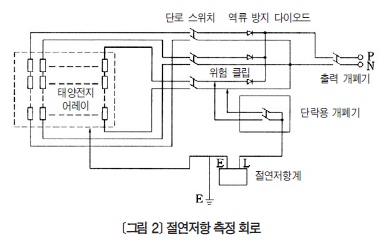 ¨é Àý¿¬ÀúÇ× ÃøÁ¤ Àý¿¬ÀúÇ×°è·Î ÃøÁ¤ÇØ Àü±â¼³ºñ±â¼ú±âÁØ¿¡ Á¤ÇØÁø Àý¿¬ÀúÇ×°ªÀÌ È®º¸µÆ´ÂÁö¸¦ È®ÀÎÇÑ´Ù(<Ç¥ 6> ÂüÁ¶). žçÀüÁö´Â ³· µ¿¾È¿¡´Â Ç×»ó Àü¾ÐÀ» ¹ß»ýÇϱ⠶§¹®¿¡ ÃøÁ¤ Àå¼Ò°¡ ¹«Àü¾ÐÀÎÁö È®ÀÎÇϰí Àý¿¬ÀúÇ×À» ÃøÁ¤ÇÒ Çʿ䰡 ÀÖ´Ù.