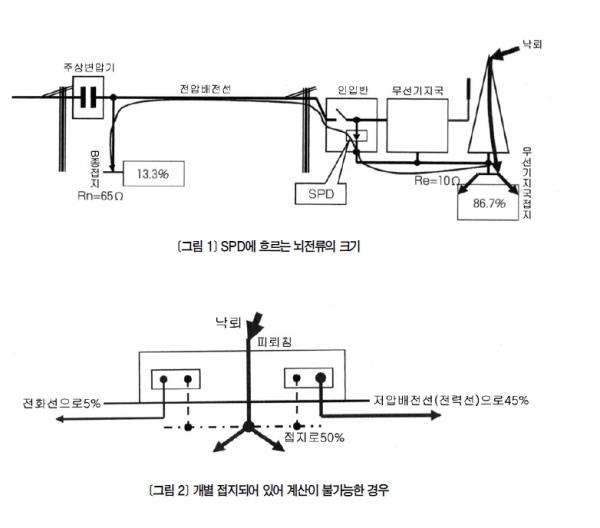 [¾Ë±â ½¬¿î ³ú´ëÃ¥ÀÇ ±âº» ¹× ±â¼ú ¨ì] (1) Á÷°Ý·Ú ´ëÀÀ ¥°µî±Þ SPD¸¦ ÀÌ¿ëÇÑ ³ú´ëÃ¥ ¨ç À̵¿¹«¼±±¹¿¡ ¹ß»ýÇÏ´Â ³úÀü·ù Å©±â <Ç¥ 1>¿¡ ³ªÅ¸³½ °ÍÀº KS C IEC 61321-1(2011)¿¡ ±ÔÁ¤µÈ ³úÀü·ùÀÇ Å©±â¿Í KS C IEC 62305¿¹(2007) ±ÔÁ¤µÈ º¸È£·¹º§, º¸È£È¿À²ÀÇ °ü°èÀÌ´Ù. ![]() º¸È£·¹º§¥°Àº Àüü ³ú¹æÀü(³«·Ú)ÀÇ 98%¸¦ ´ë»óÀ¸·Î ÇÏ¸ç ³úÀü·ùÀÇ ÃÖ´ëÄ¡´Â 200§ÍÀÌ´Ù. º¸È£·¹º§¥±~¥³ÀÇ ³úÀü·ù ÃÖ´ëÄ¡´Â º¸È£·¹º§¥°ÀÇ 75%(150§Í) ¹× 50%(100§Í)·Î ³·¾ÆÁø´Ù. º¸È£·¹º§ÀÇ ¼±Á¤Àº KS C IEC 62305 (2007)¿¡ µû¸£¸é ÀϹݰÇÃ๰Àº ·¹º§¥³¸¦, Ⱦà, °¡¿¬¼º¾×ü, °¡¿¬¼º°¡½º µîÀÇ À§Çè¹°ÀÇ ÀúÀå¿¡ »ç¿ëµÇ´Â °ÇÃ๰¿¡´Â ·¹º§¥±¸¦ ÃÖÀú±âÁØÀ¸·Î ÇØ¾ß ÇÑ´Ù. ±×·¯³ª ÀÔÁöÁ¶°Ç, °ÇÃ๰ÀÇ Á¾·ù ¹× Á߿䵵¿¡ ºñ·ÊÇÏ¿© º¸´Ù ³ôÀº ·¹º§À» Àû¿ëÇØ¾ß ÇÑ´Ù°í ±ÔÁ¤µÇ¾î ÀÖ´Ù. À̵¿¹«¼±±¹Àº ÀϹݰÇÃ๰ º¸´Ù ³ôÀº º¸È£·¹º§¥²¸¦ ¼±Á¤ÇØ¾ß ÇÑ´Ù. ³úÀü·ùÀÇ Å©±â(ÃÖ´ëÄ¡)´Â <Ç¥ 1>¿¡ µû¶ó 100§Í(10/350§Á)ÀÌ´Ù. ¨è º¸È£·¹º§¥²ÀÎ °æ¿ì, ÀÎÀÔ¹ÝÀÇ SPD¿¡ È帣´Â ³úÀü·ùÀÇ Å©±â <±×¸² 1>Àº º¸È£·¹º§¥²ÀÎ À̵¿¹«¼±±¹ 100§Í(10/350§Á)ÀÇ ³«·Ú°¡ ¹ß»ýÇÏ¿´À» ¶§ ÀÎÀÔ¹ÝSPD¿¡ È帣´Â Àü·ùÆÄÀÇ Å©±â¸¦ ³ªÅ¸³½ °ÍÀÌ´Ù. KS C IEC 61321-1(2011), KS C IEC 61643-12(2007)¿¡ µû¸£¸é ¿ÜºÎ ³úº¸È£½Ã½ºÅÛ(ÇÇ·Úħ)À» ¼³Ä¡ÇÑ °Ç¹°ÀÇ SPD¿¡ È帣´Â Àü·ùÀÇ ºÐÆ÷´Â ÀϹÝÀûÀ¸·Î Á¢ÁöÀÇ Á÷·ùÀúÇ×°ª(¿¹¸¦ µé¾î °Ç¹°ÀÇ Á¢Áö, °ü ¹× ¹èÀü±â±âÀÇ Á¢Áö)À» ÀÌ¿ëÇÏ¿© °áÁ¤ÇÑ´Ù. ¹«¼±±¹ÀÇ Á¢ÁöÀúÇ× Re=10Ω, Àü·Âȸ»çÀÇ Áֻ󺯾бâ BÁ¾Á¢ÁöÀúÇ× Rn=65ΩÀ̶ó¸é ÀÎÀÔ¹Ý SPD¸¦ Åë°úÇØ Áֻ󺯾бâ BÁ¾Á¢Áö·Î ºÐ·ùµÇ´Â ³úÀü·ù´Â Àüü ³úÀü·ù(100§Í)ÀÇ 13.3%(13.3§Í) ÀÌ´Ù. <±×¸² 2>´Â °³º° Á¢ÁöµÇ¾î ÀÖ¾î °è»êÀÌ ºÒ°¡´ÉÇÑ °æ¿ìÀÇ ¿¹¸¦ ³ªÅ¸³½ °ÍÀÌ´Ù. °³º° Á¢ÁöµÇ¾î ÀÖ¾î °è»êÀÌ °ï¶õÇÑ °æ¿ì¿¡´Â ÀüüÀü·ù(100§Í)ÀÇ 50%°¡ ÇØ´ç°ÇÃ๰ÀÇ Á¢Áö·Î À¯ÀÔµÇ°í ³²Àº 50%´Â °ÇÃ๰ÀÇ ÀÎÀÔ¼±/ÀÎÀÔ°ü(Àú¾Ð¹èÀü¼± ¹× Åë½Å¼±, ¼öµµ°ü µîÀÇ ±Ý¼ÓÆÄÀÌÇÁ µî)¿¡ ºÐ·ùµÇ´Â °ÍÀ¸·Î °¡Á¤ÇÏ¿© °è»êÇÑ´Ù. SPD µî¿¡ ¿¬¼Ó Á¢Áö½ÃŲ °æ¿ì, Àüȼ±¿¡ È帣´Â Àü·ù´Â ÀüüÀü·ùÀÇ 5%(5§Í)¸¦ ÃÖÀú°ªÀ¸·Î ÇÏ¿© °¡Á¤ÇÑ´Ù. ³²Àº 45%´Â ¼öµµ°ü µîÀÇ ±Ý¼ÓÆÄÀÌÇÁ ¹× Àú¾Ð¹èÀü¼±(Àü·Â¼±)À¸·Î Èê·¯ µé¾î°£´Ù. ±×·¯³ª °ÇÃ๰ÀÇ ¿ÜºÎ¿¡´Â ÀϹÝÀûÀ¸·Î °¡½º°üÀÌ ¾ø°í ¼öµµ°üµµ ºñ±Ý¼ÓÀ̱⠶§¹®¿¡ Àú¾Ð¹èÀü¼±(Àü·Â¼±)À¸·Î ´ëºÎºÐÀÇ ³úÀü·ù°¡ È帥´Ù. Àú¾Ð¹èÀü¼± µî Â÷ÆóµÇÁö ¾ÊÀº ÄÉÀ̺íÀÇ °³°³ÀÇ µµÃ¼¿¡ È帣´Â Àü·ù´Â ÄÉÀÌºí¿¡ È帣´Â Àüü Àü·ù¸¦ µµÃ¼¼ö·Î ³ª´©¾î °è»êÇÑ´Ù. <Ç¥ 2>´Â ÇÇ·Úħ¿¡ ³«·Ú°¡ ¹ß»ýÇÑ À̵¿¹«¼±±¹ Àü¿ø ÀÎÀÔ¹ÝÀÇ SPD¿¡ È帣´Â ³úÀü·ùÀÇ Å©±â¸¦ ³ªÅ¸³½ °ÍÀÌ´Ù. <Ç¥ 2>¿¡ µû¸£¸é º¸È£·¹º§¥²ÀÌ¸ç °³º° Á¢ÁöµÇ¾îÀÖ¾î °è»êÀÌ °ï¶õÇϰí Àü¿ø ÀÎÀÔÀÌ ´Ü»ó 2ȸ¼±ÀΠȸ·ÎÀÎ °æ¿ì, À̵¿¹«¼±±¹ÀÇ SPD¿¡ È帣´Â ³úÀü·ù´Â ÃÖ´ë 22.5§Í(10/350§Á)°¡ µÈ´Ù. ![]() ![]() ![]() ¨é SPDÀÇ ¼±Á¤¿¡ ´ëÇÏ¿© À̵¿¹«¼±±¹ Àü¿øÀÎÀÔ¹ÝÀÇ SPD¿¡´Â ÃÖ´ë 22.5§Í(10/350§Á)ÀÇ ³úÀü·ù°¡ È带 °¡´É¼ºÀÌ Àֱ⠶§¹®¿¡ 22.5§Í(10/35§Á)ÀÇ ³úÀü·ù¿¡ °ßµô ¼ö ÀÖ´Â SPD¸¦ <Ç¥ 3>¿¡¼ ¼±Á¤ÇÏ¿© »ç¿ëÇÏ¸é µÈ´Ù. ![]() <±×¸² 3>Àº Á÷°á·Ú ´ëÀÀ »êȾƿ¬Çü ¥°µî±Þ SPD(LD-C22EFS: ±×¸² 4)¸¦ »ç¿ëÇÑ À̵¿¹«¼±±¹ÀÇ ³ú´ëÃ¥ °ÈÀÇ ÀÏ¿¹¸¦ ³ªÅ¸³½ °ÍÀÌ´Ù. ![]() ![]() (2) ³»·Úº¯¾Ð±â¿Í °í³»¾ÐÇǷڱ⸦ ÀÌ¿ëÇÑ ´ëÃ¥ ³»·Úº¯¾Ð±â¸¦ ÀÌ¿ëÇÑ ³úº¸È£ÀÇ ¹®Á¦Á¡Àº ³«·Ú°¡ Å©±â ¶§¹®¿¡ ¹«¼±±¹ÀÇ ÀüÀ§°¡ »ó½ÂÇÏ¿© ³»·Úº¯¾Ð±âÀÇ Àý¿¬ÀÌ ÆÄ±«µÇ´Â Çö»óÀÌ´Ù. ³ú´Â ÀÚ¿¬Çö»óÀÌ¶ó ³»·Úº¯¾Ð±âÀÇ Àý¿¬°µµ¸¦ ¹«ÇÑÁ¤ ³ôÀÏ ¼ö ¾ø¾î ÇØ°áÀÌ ½±Áö ¾Ê´Ù. °í³»¾ÐÇǷڱ⸦ ÀÌ¿ëÇÏ¿© ³»·Úº¯¾Ð±âÀÇ Àý¿¬ÆÄ±«¸¦ ¿¹¹æÇÏ´Â ¹æ¹ýÀÌ ÀÖ¾î À̸¦ ¼Ò°³ÇϰíÀÚ ÇÑ´Ù. ¿ÀÅä¿ÍÀü±â°ø¾÷ÁÖ½Äȸ»çÀÇ °í³»¾ÐÇÇ·Ú±â GLSB2X´Â °í¾Ð¿ë »êȾƿ¬¼ÒÀÚ°¡ ³»ºÎÀÇ ÀåÂøµÈ ±âÁØ Àü¾Ð(µ¿ÀÛ°³½ÃÀü¾Ð) 20§Ç Á¤µµÀÇ ÇÇ·Ú±âÀÌ´Ù. <Ç¥ 4>¿¡, <±×¸² 5>¿¡ Ư¼º ¹× ¿Ü°ü »çÁøÀ» ³ªÅ¸³»¾ú´Ù. <±×¸² 6>Àº °í³»¾ÐÇÇ·Ú±â GLS-B2X¸¦ ³»·Úº¯¾Ð±â¿¡ ³»Àå½ÃŲ ´ëÃ¥ÀÇ ÀÏ¿¹¸¦ ³ªÅ¸³½ °ÍÀÌ´Ù. ¹«¼±±¹¿¡ ³«·Ú°¡ ¹ß»ýÇϸé, ¹«¼±±¹ÀÇ ÀüÀ§´Â ³úÀü·ù¿Í ¹«¼±±¹ÀÇ Á¢ÁöÀúÇ×À» °öÇÑ °ª¸¸Å ³ô¾ÆÁø´Ù. ÀüÀ§°¡ ³ô¾ÆÁ® °í³»¾Ð·Ú±âÀÇ ±âÁØÀü¾Ð ÀÌ»óÀÌ µÇ¸é ÇǷڱⰡ µ¿ÀÛÇÏ¿© ³»·Úº¯¾Ð±â¿¡ Àΰ¡µÇ´Â ÀüÀ§Â÷°¡ ³»·Úº¯¾Ð±âÀÇ À