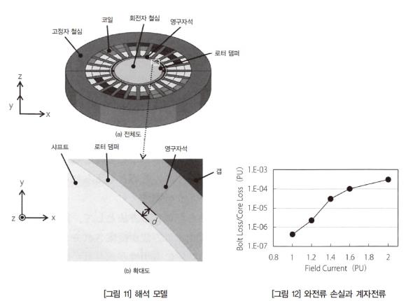 [ȸÀü±âÀÇ 3Â÷¿ø ÀüÀÚ°è ÇØ¼®±â¼ú°ú ±× ÀÀ¿ë ¨é] ÀüÀÚ°è ÇØ¼®ÀÇ ÀÀ¿ë »ç·Ê ÃÖ±Ù ÀüÀÚ°è ÇØ¼®ÀÇ °í¼ÓȰ¡ ½ÇÇöµÊ¿¡ µû¶ó ¸¹Àº ÆÄ¶ó¹ÌÅÍ ¹× ȸÀü±âÀÇ ±¸Á¶¸¦ º¸´Ù ¼¼¹ÐÇÏ°Ô °í·ÁÇÔÀ¸·Î½á Ư¼º Æò°¡°¡ ÇÑÃþ ¿ëÀÌÇØÁö°í, ÀÌ¿Í °ü·ÃÇÑ ¸¹Àº Àû¿ë »ç·ÊµéÀÌ º¸°íµÇ±â ½ÃÀÛÇß´Ù. º»°í¿¡¼´Â ÀüÀÚ°è ÇØ¼®ÀÇ ÀÀ¿ë »ç·Ê·Î¼, °¨µµ ÇØ¼® ¹× ÃÖÀûÈ¿¡ ÀüÀÚ°è ÇØ¼®À» Àû¿ëÇÑ ¿¹¿Í ÇÔ²² ÀûÃþ°ÆÇÀ̳ª º¼Æ® µîÀÇ ±¸Á¶¹°À» °í·ÁÇÑ ¿ÍÀü·ùÀÇ ÇØ¼® »ç·Ê¸¦ ¼Ò°³ÇÑ´Ù. Á¤¸® ÆíÁýºÎ ÀüÀÚ°è ÇØ¼® ÀÀ¿ë¿¡ ÀÇÇÑ È¸Àü±âÀÇ ÃÖÀû¼³°è ¸ÅÀÔÀÚ¼® ±¸Á¶ µ¿±âÀüµ¿±â ÃÖÀûÈ¿¡ ´ëÇÑ Àû¿ë ¿¹ »ê¾÷¿ë ¸ðÅÍ¿¡¼´Â °íÈ¿À² ±Ô°Ý Á¦Á¤¿¡ µû¶ó °¢±¹¿¡¼ ¹ý±ÔÁ¦ÀÇ Á¤ºñ°¡ ÁøÇàµÇ°í ÀÖ´Ù. ¹Ì·¡ÀÇ °íÈ¿À² ±Ô°Ý¿¡ ´ëÀÀÇÑ ¸ðÅͷμ ÈñÅä·ù ¿µ±¸ÀÚ¼®À» ÀÌ¿ëÇÑ ¸ðÅͰ¡ ±â´ë¸¦ ¸ðÀ¸°í ÀÖ´Â °¡¿îµ¥ ¿øÀç·á·Î »ç¿ëµÇ´Â ÁßÈñÅä·ùÀÇ ¾ÈÁ¤°ø±Þ¿¡´Â ¾ÆÁ÷ °úÁ¦°¡ ¸¹ÀÌ ³²¾Æ ÀÖ¾î ¾ÕÀ¸·Î ÀÚ¼® »ç¿ë·®À» ÁÙÀÌ¸é¼ ¼º´ÉÀ» ´Þ¼º½ÃŰ´Â ¼³°è°¡ ¿ä±¸µÇ°í ÀÖ´Ù. ¶Ç IPM ¸ðÅÍÀÇ °æ¿ì, ȸÀüÀÚ Ã¶½É ¿Ü°æ(¹Ù±ùÁö¸§) ±Ù¹æÀÇ Ä¡¼ö¿¡ ´ëÇØ Àü±âÀû Ư¼º¿¡¼´Â ‘´©¼³ÀÚ¼Ó Àú°¨’, ±â°èÀû °µµ¿¡¼´Â ‘ÀÀ·ÂÁýÁß ¿ÏÈ’¶ó°í ÇÏ´Â ¿ä±¸¸¦ ¸¸Á·½ÃŰ´Â Ä¡¼ö¸¦ µµÃâÇÒ Çʿ䰡 ÀÖ´Ù. ÀÌ·¯ÇÑ °¢Á¾ ¿ä±¸¸¦ ¾ç¸³ÇÏ´Â ¼³°è¸¦ µµÃâÇØ¾ß Çϱ⠶§¹®¿¡ Á÷±³Ç¥¿¡ ÆÄ¶ó¹ÌÅ͸¦ ÇÒ´çÇÏ¿© °¢ ºÎºÐÀÇ Ä¡¼ö ¿µÇâÀ» Æò°¡ÇÑ »ç·ÊµéÀÌ º¸°íµÇ°í ÀÖ´Ù. È¿À²°ú ÀÚ¼®·®À» ´ë»óÀ¸·Î ÇÑ ´Ù¸ñÀû ÃÖÀûȸ¦ ½ÇÇöÇϱâ À§ÇØ Á÷±³Ç¥¸¦ ÀÌ¿ëÇÑ ¿¹¸¦ ¼Ò°³ÇÑ´Ù. ¿©±â¼´Â ±Ø¼ö, ö½É ±æÀ̻Ӹ¸ ¾Æ´Ï¶ó, [±×¸² 1]¿¡ ³ªÅ¸³½ ¿µ±¸ÀÚ¼® Ä¡¼ö¸¦ Á¦¾îÀÎÀÚ·Î Çϰí, ¼öÁØÀ» L18 Á÷±³Ç¥¿¡ ÇÒ´çÇÑ ÈÄ ½Ä (1)¿¡ ÀÇÇØ °¡ÁßÄ¡¸¦ ºÎ¿©ÇÏ¿© °á°ú¸¦ Á¤¸®Çϰí ÀÖ´Ù. ¿©±â¼ Wi´Â °¢ Ư¼ºÀÇ °¡ÁßÄ¡¸¦, SNi*´Â SNºñÀÇ Æò±ÕÄ¡·ÎºÎÅÍÀÇ Â÷ºÐÀ» Ç¥ÁØÆíÂ÷·Î ³ª´©¾î Á¤±ÔÈÇÑ SNºñ¸¦ ³ªÅ¸³»°í ÀÖ´Ù. ![]() ![]() ![]() Á¶Çü(ðÐû¡) ÀÚ±Ø ¸ðÅÍ¿¡ ´ëÇÑ Àû¿ë ¿¹ ¸ðÅÍÀÇ Ã¶½É¿¡´Â ÀüÀÚ°ÆÇÀ» »ç¿ëÇÏ´Â °ÍÀÌ ÀϹÝÀûÀÌÁö¸¸, ½ÅÀç·á·Î °¢±¤ ¹Þ´Â ¾ÐºÐÀÚ½ÉÀ̳ª ¾î¸ðÆÛ½º µî¿¡ ´ëÇÑ Àû¿ë °¡´É¼ºµµ °ËÅäµÇ°í ÀÖ´Ù. ÀÌ Àå¿¡¼´Â Á¶Çü ÀÚ±Ø ¸ðÅÍ¿¡ ÀÖ¾î¼ Ã¶½É °¢ ºÎºÐÀÇ Ä¡¼ö°¡ Ư¼º¿¡ ¹ÌÄ¡´Â ¿µÇâÀ» Æò°¡ÇÑ »ç·Ê¸¦ ¼Ò°³ÇÑ´Ù. [±×¸² 3]¿¡ ³ªÅ¸³½ °¢ ºÎºÐÀÇ Ä¡¼ö¸¦ Á¦¾îÀÎÀÚ·Î ÇÏ¿© L18 Á÷±³Ç¥¿¡ ¼öÁØÀ» ÇÒ´çÇϰí, 3Â÷¿ø ÀÚ°è ÇØ¼®À» ÀÌ¿ëÇÑ °è»ê °á°ú·ÎºÎÅÍ [±×¸² 4]¿¡ º¸ÀÌ´Â ÅäÅ©¿¡ ´ëÇÑ °¨µµ ÇØ¼® °á°ú¸¦ ¾ò°í ÀÖ´Ù. ÀÌ °¨µµ ÇØ¼® °á°ú·ÎºÎÅÍ Æ¼½º ³ôÀÌ(E), ÄÚÀÏ µÎ²²(F), Ƽ½º ¹ØÆø(H)ÀÇ °¨µµ°¡ ³ô°Ô ³ªÅ¸³ª°í ÀÖÀ½À» È®ÀÎÇÒ ¼ö ÀÖ´Ù. ![]() Àü±âÇÐȸ D¸ðµ¨ÀÇ ÇØ¼® »ç·Ê º¥Ä¡¸¶Å© ¸ðµ¨·Î ¼³Á¤ÇÑ ¸ðÅÍÀÇ ÇØ¼®°ú ÃøÁ¤À» ½Ç½ÃÇϰí, ÇØ¼® Á¤¹Ðµµ¸¦ °ËÁõÇÏ´Â ¿¬±¸ ³»¿ëÀÌ ±â¼úº¸°í¼¿¡ Á¤¸®µÇ¾î ÀÖ´Ù. ÀÌ °¡¿îµ¥ ÁöÀûÀ» ¹ÞÀº ö¼ÕÀÇ ÃøÁ¤ °á°ú¿Í ÇØ¼® °á°úÀÇ Â÷ÀÌ µî¿¡ ´ëÇØ Àü±âÇÐȸ D¸ðµ¨À» ´ë»óÀ¸·Î ½Ç½ÃÇÑ ÇØ¼® »ç·Ê¸¦ ¼Ò°³ÇϰíÀÚ ÇÑ´Ù. ÀÚ¼ºÃ¼ º¼Æ®¸¦ °í·ÁÇÑ ÇØ¼® ¿¹ D¸ðµ¨ÀÇ ¼Õ½Ç ÃøÁ¤ ¹× ÇØ¼® °á°ú, ÀÚ¼ºÃ¼ º¼Æ®¸¦ »ç¿ëÇÑ °æ¿ì ¼Õ½ÇÀÌ Áõ°¡ÇÏ´Â Çö»óÀÌ ³ªÅ¸³ª°í ÀÖ´Ù. ÀÚ¼ºÃ¼ º¼Æ®¿¡ ÀÇÇØ ¼Õ½ÇÀÌ Áõ°¡ÇÏ´Â ¿äÀÎÀ¸·Î¼ ¡ãº¼Æ®ÀÇ Æí½É ¡ãº¼Æ®¿Í ¿£µå Ç÷¹ÀÌÆ®(end plate) ¹× ȸÀüÀÚ Ã¶½É°úÀÇ Á¢ÃË, ¡ãȸÀüÀÚ Æí½É¿¡ ´ëÇØ ÀüüÀûÀÎ ¿µÇâÀ» Æò°¡ÇÑ °á°úµéÀÌ º¸°íµÇ°í ÀÖ´Ù. [±×¸² 5]ÀÇ ¸ðµ¨À» ÀÌ¿ëÇØ º¼Æ®¿Í ö½É °£ÀÇ Á¢ÃËÀúÇ×À» 0(Insulated)¿¡¼ºÎÅÍ º¼Æ®¿Í °°¾ÆÁú ¶§(Full contact)±îÁö º¯È½ÃÄÑ ¼Õ½ÇÀ» »êÃâÇÏ¿´´Ù. ¿£µå Ç÷¹ÀÌÆ®ÀÇ °æ¿ì, ȸÀüÀÚ Ã¶½É°úÀÇ Á¢ÃËÀ» ¹«½ÃÇÑ °á°ú¿¡ ºñÇØ ¿ÏÀüÁ¢ÃË¿¡¼´Â 100¹è Á¤µµ·Î ´ëÆø Áõ°¡¼¼¸¦ º¸¿´´Ù. ¶Ç ȸÀüÀÚ Æí½ÉÀÇ °æ¿ì¿¡¼µµ ÇØ¼®À» ½Ç½ÃÇÏ¿© ȸÀüÀÚ¿¡¼ ö¼ÕÀÌ Áõ°¡Çϰí ÀÖÀ½À» È®ÀÎÇÏ¿´´Ù. ![]() ÀüÀÚ°ÆÇÀÇ Ç¥ÇÇÈ¿°ú¸¦ °í·ÁÇÑ ÇØ¼® ¿¹ ÀûÃþ°ÆÇ¿¡ ÀÛ¿ëÇÏ´Â ÀÚ¼ÓÀÇ Á֯ļö°¡ ³ôÀ» °æ¿ì, Ç¥ÇÇÈ¿°ú·Î ÀÎÇØ °ÆÇ 1ÀåÀÇ µÎ²² ¹æÇâÀ¸·Î Àڼӹеµ°¡ ºÒ±ÕÀÏÇØÁø´Ù. Ç¥ÇÇÈ¿°úÀÇ ¿µÇâÀ» Á¤¹ÐÇÏ°Ô ÇØ¼®ÇÏ·Á¸é µÎ²² ¹æÇâÀ¸·Îµµ ¸Þ½Ã¸¦ Àß°Ô ¼¼ºÐÈÇÑ ´ë±Ô¸ð ÇØ¼®ÀÌ ÇÊ¿äÇÏ´Ù. ÀÌ¿Í °ü·ÃÇÏ¿© ÈÄ󸮿¡ ÀÇÇØ ±Ù»çÀûÀ¸·Î Ç¥ÇÇÈ¿°ú¸¦ °í·ÁÇÏ´Â ¹æ¹ýÀÌ Á¦¾ÈµÇ°í ÀÖ´Ù.¿©±â¿¡¼´Â D