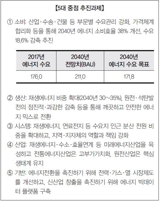 ![]() Á¦3Â÷ ¿¡³ÊÁö±âº»°èȹ ÃÖÁ¾ È®Á¤ ¿¡³ÊÁöÀüȯÀ¸·Î Áö¼Ó°¡´ÉÇÑ ¼ºÀå ¡¸Á¦3Â÷ ¿¡³ÊÁö±âº»°èȹ¡¹ 20³âÀ» °èȹ±â°£À¸·Î 5³â¸¶´Ù ¼ö¸³ÇÏ¿© ½ÃÇàÇÏ´Â ¿¡³ÊÁö Á¤Ã¥¿¡ ´ëÇÑ Ã»»çÁøÀΡ¸ Á¦3Â÷ ¿¡³ÊÁö±âº»°èȹ¡¹ÀÌ È®Á¤µÆ´Ù. Á¤ºÎ´Â 6¿ù 4ÀÏ ±¹¹«È¸ÀǸ¦ °³ÃÖÇϰí ÃÖÁ¾¾ÈÀ» ½ÉÀÇÇϰí À̸¦ È®Á¤Çß´Ù.¡¸ Á¦3Â÷ ¿¡³ÊÁö±âº»°èȹ¡¹Àº 2019³âºÎÅÍ 2040³â±îÁöÀDZ⺻ Á¤Ã¥°ú °èȹÀ» ´ã°í ÀÖ´Ù. À̹ø ¿¡³ÊÁö±âº»°èȹÀº 1, 2Â÷ °èȹÀÇ ±âº»¹æÇâ°ú Á¤ÇÕ¼ºÀ» À¯ÁöÇÏ¸é¼ ±ú²ýÇÏ°í ¾ÈÀüÇÑ ¿¡³ÊÁö·ÎÀÇ ÀüȯÀ̶ó´Â ½Ã´ëÀû ¿ä±¸¸¦ Ãæ½ÇÈ÷ ¹Ý¿µÇß´Ù´Â Æò°¡¸¦ ¹Þ°í ÀÖ´Ù. ±Û °Ã¢´ë ±âÀÚ ![]() ¡¸Á¦3Â÷ ¿¡³ÊÁö±âº»°èȹ¡¹(ÀÌÇÏ ‘3Â÷ ¿¡±âº»’) ¸¶·ÃÀ» À§ÇØ 2018³â 3¿ùºÎÅÍ 11¿ù±îÁö Çаè¿Í »ê¾÷°è, ½Ã¹Î´Üü µî ¹Î°£ Àü¹®°¡ 75¸íÀ¸·Î ¿öÅ·±×·ìÀ» ±¸¼ºÇØ 76Â÷·Ê ºÐ°úº° ȸÀÇ¿Í ´Ù¼¸ ¹ø¿¡ °ÉÄ£ ±Ç¿ªº° ¼³¸íȸ µîÀ» ÅëÇØ Á¤Ã¥°úÁ¦º°·Î ½ÉÃþÀûÀÎ °ËÅä¿Í ´Ù¾çÇÑ ÀÇ°ß ¼ö·ÅÀ» °ÅÃÆ´Ù. ¿öÅ·±×·ìÀÇ ½ÉÃþ °ËÅä°á°ú¸¦ ¹ÙÅÁÀ¸·Î ÀÛ³â 11¿ù¿¡´Â ±Ç°í¾ÈÀÌ ¸¶·ÃµÅ Á¤ºÎ¿¡ Á¦ÃâµÆ´Ù. Á¤ºÎ´Â ±Ç°í¾ÈÀ» ¹ÙÅÁÀ¸·Î ´Ù½Ã 10¿© Â÷·ÊÀÇ °ø°³Åä·Ðȸ, °£´ãȸ µîÀ» °³ÃÖÇÏ´Â µî Àü¹®°¡¿Í ±¹¹ÎÀÇ Àǰ߼ö·ÅÀ» °ÅÃÄ °èȹ(¾È)À» ¸¶·ÃÇÏ¿´À¸¸ç, Áö³ 5¿ù 10ÀÏ¿¡´Â ¿¡³ÊÁöÀ§¿øÈ¸, ±×¸®°í 5¿ù 17ÀÏ¿¡´Â ³ì»ö¼ºÀåÀ§¿øÈ¸ÀÇ ½ÉÀǸ¦ °ÅÃÆ´Ù. ÀÌ·¸°Ô ¸¶·ÃµÈ ‘3Â÷ ¿¡±âº»’Àº 1·2Â÷ °èȹÀÇ ±âº»¹æÇâ°ú Á¤ÇÕ¼ºÀ» À¯ÁöÇÏ¸é¼ ±ú²ýÇÏ°í ¾ÈÀüÇÑ ¿¡³ÊÁö·ÎÀÇ ÀüȯÀ̶ó´Â ½Ã´ëÀû ¿ä±¸¸¦ Ãæ½ÇÈ÷ ¹Ý¿µÇÏ¿´´Ù´Â ÆòÀ» ¹Þ¾Ò´Ù. ±¸Ã¼ÀûÀ¸·Î À̹ø ‘3Â÷ ¿¡±âº»’¿¡´Â °ø±ÞÁß½ÉÀÇ ¿¡³ÊÁö ´Ù¼ÒºñÇü üÁ¦¸¦ ¼Òºñ±¸Á¶ Çõ½ÅÀ» ÅëÇØ ¼±Áø±¹Çü °íÈ¿À²·Àú¼ÒºñÇü ±¸Á¶·Î ÀüȯÇÏ´Â °Í°ú ¾ÈÁ¤Àû ¿¡³ÊÁö ¼ö±ÞÀ» À¯ÁöÇÏ¸é¼ ¹Ì¼¼¸ÕÁö ¹®Á¦¸¦ ÇØ°áÇϰí, ÆÄ¸®Çù¾à¿¡ µû¸¥ ¿Â½Ç°¡½º °¨Ãà Àǹ«ÀÇ ÀÌÇà ¹æ¾ÈÀÌ ´ã°å´Ù. ±×¸®°í ÈÄÄí½Ã¸¶ ¿øÀü»ç°í¸¦ ºñ·ÔÇØ, 2016³â 9¿ù¿¡ ¹ß»ýÇÑ °æÁÖÁöÁø, 2017³â 11¿ù¿¡ ¹ß»ýÇÑ Æ÷Ç×ÁöÁø ÀÌÈÄ ¾ÈÀüÇÑ ¿¡³ÊÁö¿¡ ´ëÇÑ ±¹¹ÎÀû ¿ä±¸°¡ ¹Ý¿µµÆ´Ù. ¶ÇÇÑ, ´ë±Ô¸ð Áß¾ÓÁýÁßÇü ¿¡³ÊÁö½Ã¼³ ¹× ¼ÛÀü¸Á¿¡ ´ëÇÑ ¼ö¿ë¼º º¯È¸¦ °í·ÁÇÏ¿© ºÐ»êÇü ¿¡³ÊÁö ¹× Áö¿ª, ÁöÀÚü µîÀÇ Âü¿©¸¦ È®´ëÇÏ´Â °èȹÀ» ºñ·ÔÇØ, 4Â÷ »ê¾÷Çõ¸í ±â¼úÀÇ Á¢¸ñÀ» ÅëÇØ ¿¡³ÊÁö ºÐ¾ß¿¡¼ »õ·Î¿î »ê¾÷·¼ºñ½º¸¦ À°¼ºÇÏ°í ¾çÁúÀÇ ÀÏÀÚ¸® âÃâÀ» ÃßÁøÇÏ´Â °èȹ µîÀÌ Æ÷ÇԵƴÙ. ![]() Áö¼Ó°¡´ÉÇÑ ¼ºÀå°ú »îÀÇ Áú ±¸Ã¼ÀûÀ¸·Î, 3Â÷ °èȹÀº ‘¿¡³ÊÁöÀüȯÀ» ÅëÇÑ Áö¼Ó°¡´ÉÇÑ ¼ºÀå°ú ±¹¹Î »îÀÇ Áú Á¦°í’¶ó´Â ºñÀü ¾Æ·¡ ¼Òºñ¿Í »ý»ê, ½Ã½ºÅÛ, »ê¾÷, ±â¹Ý µî 5´ë ÁßÁ¡ ÃßÁø°úÁ¦·Î ±¸¼ºµÇ¾ú´Ù. ¸ÕÀú, 3Â÷ ¿¡±âº»ÀÇ ¿¡³ÊÁö ¼Òºñ±¸Á¶ Çõ½Å°ú °ü·ÃÇÑ ³»¿ëÀ» »ìÆìº¸¸é, »ê¾÷, °Ç¹°, ¼ö¼Û µî ºÎ¹®º° ¼ö¿ä°ü¸®¸¦ ´ëÆø °ÈÇÑ´Ù. ¿¹¸¦ µé¾î, »ê¾÷ ºÎ¹®¿¡¼´Â ´Ù¼Òºñ ¾÷Á¾ »ç¾÷Àå(2,000 TOE ÀÌ»ó)º°·Î ¿ø´ÜÀ§¸¦ ¿¬°£ 1%¾¿ Àý°¨ÇÏ´Â ÀÚ¹ßÀû Çù¾àÀ» 2020³âºÎÅÍ ÃßÁøÇÑ´Ù. ¸ñÇ¥¸¦ ´Þ¼ºÇÑ »ç¾÷Àå¿¡´Â ¿ì¼ö»ç¾÷Àå ÀÎÁõ ¹× ¿¡³ÊÁöÁø´ÜÀ» ¸éÁ¦ÇØÁÖ´Â ¹æ¾ÈÀ» ÃßÁøÇÑ´Ù. °Ç¹° ºÎ¹®¿¡¼´Â ž-·¯³ÊÀÌ´Ï¼ÅÆ¼ºê(top runner initiative)¸¦ µµÀÔÇÑ´Ù. ž-·¯³Ê Á¦µµ´Â µ¿Á¾ÀÇ Á¦Ç°(¶Ç´Â °Ç¹°) °¡¿îµ¥ °¡Àå ¿¡³ÊÁö È¿À²ÀÌ ³ôÀº Á¦Ç°À» È¿À²ÀÇ ±âÁØÀ¸·Î »ï¾Æ ´Ù¸¥ Á¦Ç°ÀÌ ÀÏÁ¤ÇÑ ±â°£ À̳»¿¡ À̸¦ ÃæÁ·Çϵµ·Ï ±ÔÁ¦ÇÏ´Â Á¦µµÀÌ´Ù. À̸¦ À§ÇØ Á¤ºÎ´Â °Ç¹°À¯Çüº° Ç¥ÁØ ¿ø´ÜÀ§¸¦ °í½ÃÇÏ°í ¿¡³ÊÁö È¿À² Æò°¡¿ë µ¥ÀÌÅÍ Ç÷§ÆûÀ» ±¸ÃàÇØ Æò°¡ °á°ú°¡ ¿ì¼öÇÑ °Ç¹°¿¡ ÀÎÁ¤¸¶Å©(¹Ì±¹½Ä °Ç¹°¿¡³ÊÁö½ºÅ¸ Á¦µµ)¸¦ ºÎ¿©ÇÒ °èȹÀÌ´Ù. ±×¸®°í 2028³â±îÁö Çü±¤µîÀ» ÅðÃâ½Ãų ¹æÄ§ÀÌ´Ù. ¼ö¼Û ºÎ¹®¿¡¼´Â 2022³â±îÁö Áß´ëÇüÂ÷ ¿¬ºñ¸ñÇ¥¸¦ ½Å±Ô·Î µµÀÔÇÏ°í ½Â¿ëÂ÷ ¿¬ºñ¸¦ Çâ»ó½Ãų °èȹÀÌ´Ù. 2017³â ±âÁØÀ¸·Î 16.8§°/§¤ÀÎ ½Â¿ëÂ÷ Æò±Õ¿¬ºñ´Â 2040³â±îÁö 35§°/§¤·Î µÎ ¹è ÀÌ»ó, Áß´ëÇüÂ÷ÀÇ Æò±Õ¿¬ºñ´Â 1.5¹è Çâ»óµÈ 7.5§°/§¤±îÁö ²ø¾î¿Ã¸°´Ù´Â ¸ñÇ¥¸¦ ¼¼¿ü´Ù. ¶ÇÇÑ, 4Â÷ »ê¾÷Çõ¸í ±â¼úÀ» Ȱ¿ëÇÏ¿© ¼ö¿ä°ü¸® ½ÃÀåÀ» Ȱ¼ºÈÇÏ´Â °èȹµµ ¿¡³ÊÁö ¼Òºñ±¸Á¶ Çõ½Å¿¡ Æ÷ÇԵƴÙ. ¼¼ºÎÀûÀ¸·Î, ±¹¹ÎDR ½ÃÀå È®´ë, V2G ºñÁî´Ï½º ¸ðµ¨ °³¹ß, EMS »ç¾÷ÀÚ À°¼º µîÀÌ °èȹµÅ ÀÖ´Ù. ƯÈ÷ À̹ø °èȹ¿¡´Â 2020³â±îÁö Àü±¹ 2,250¸¸ È£¿¡ ¿ø°Ý °ËħÀÌ °¡´ÉÇÑ AMI(Advance